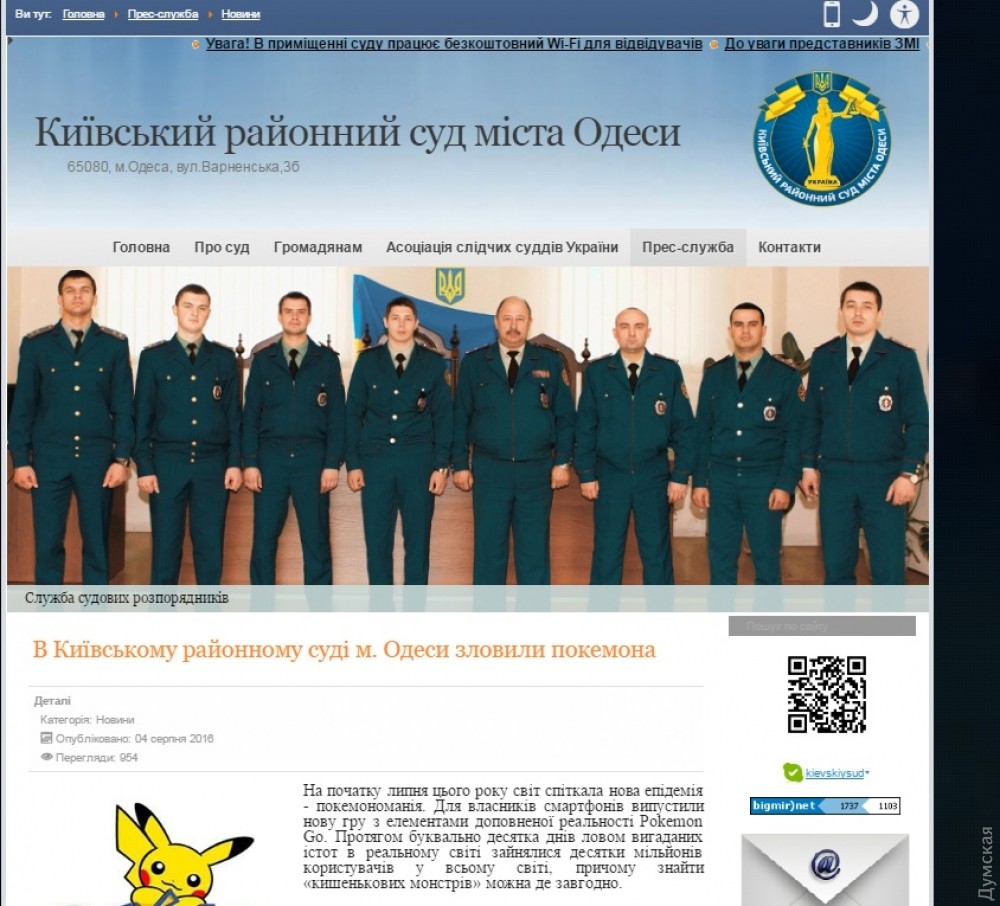 Пресс-служба Киевского районного суда Одессы доложила о пойманном на территории учреждения покемоне. Как отмечается в сообщении, опубликованном на официальном сайте суда, сегодня какой-то мужчина поспешно вбежал в храм Фемиды и таки нашел заветного монстра. Отреагировала ли на действия неизвестного ловца охрана суда, в пресс-службе не уточняют. СМЕРТЬ РОСІЙСЬКИМ ОКУПАНТАМ! Помітили помилку? Виділяйте слова з помилкою та натискайте control-enter |
