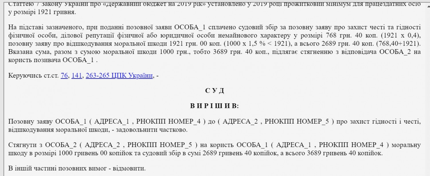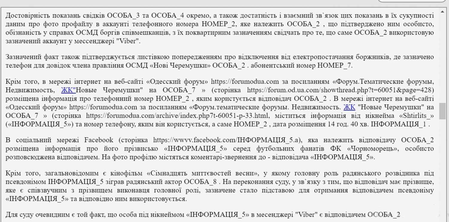 Важное для интернет-пользователей решение принял Малиновский районный суд Одессы. Он вычислил по никнейму и номеру телефона администратора закрытой группы в Viber и наказал его за оскорбление участницы. Как говорится в решении, в суд обратилась жительница ЖК «Новые Черемушки». Неприятный инцидент произошел в Viber-группе комплекса, где жильцы обсуждают организационные вопросы. На сообщение женщины: «Спасибо, готова прийти на любое заседание (суда по делу ЖК, - Ред). Напишите в личке время и место», заместитель главы ОСМД под ником Штирлиц ответил нецензурной бранью и удалил заявительницу из группы. Жительница комплекса потребовала от обидчика моральную компенсацию в размере тысячи гривен, а также публичных извинений. Сам «Штирлиц» в суде не признавался (естественно), что является основателем группы в Viber. Заявил, что указанный в иске номер телефона ему не принадлежит и с заявительницей он не общался. Холост. В связях, порочащих его, не замечен. Суд же тщательно изучил онлайн и офлайн деятельность ответчика, информацию оператора мобильной связи, показания свидетелей и разоблачил таки «разведчика». В материалах дела даже установлено, что именно побудило руководителя ОСМД взять именно такой ник - он однофамилец советского актера, который играл в фильме «Семнадцать мгновений весны». С учетом судебных издержек за резкое высказывание ответчик должен заплатить 3700 грн. А вот заставлять его извиняться суд посчитал неправомерным и в этой части требований отказал. СМЕРТЬ РОСІЙСЬКИМ ОКУПАНТАМ! Помітили помилку? Виділяйте слова з помилкою та натискайте control-enter |