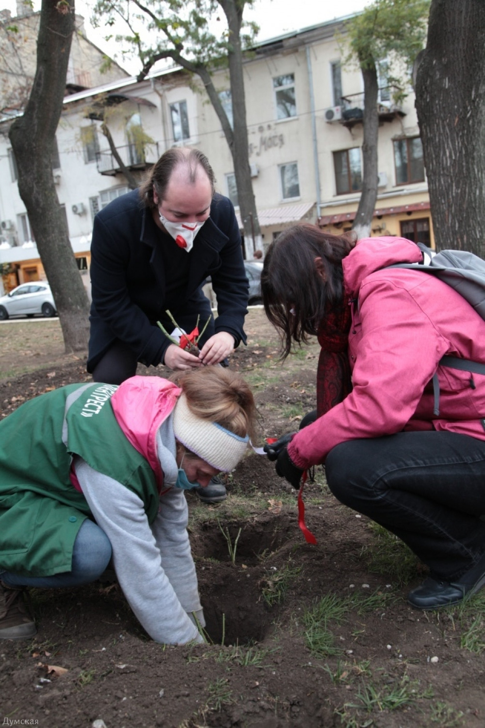 По предложению президента общества Светланы Зайцевой-Великодной, вместо юбилейных торжеств подготовили цветочный подарок Одессе – посадили 300 кустов роз на Александровском проспекте возле памятника Адаму Мицкевичу. Акция проходила в минувшие выходные.