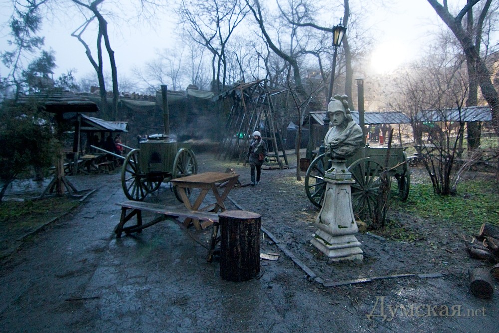 «Все актеры массовых сцен — местные жители, которые получают по 100 грн в день. Кроме того, мы сотрудничаем с одесской киностудией. Например, все оружие предоставила она. Задействованы также актеры одесских театров. Декорации, кроме тех которые еще необходимы для съемок, мы оставим одесситам в подарок — если, конечно, согласятся городские власти», — рассказал Строгов.
