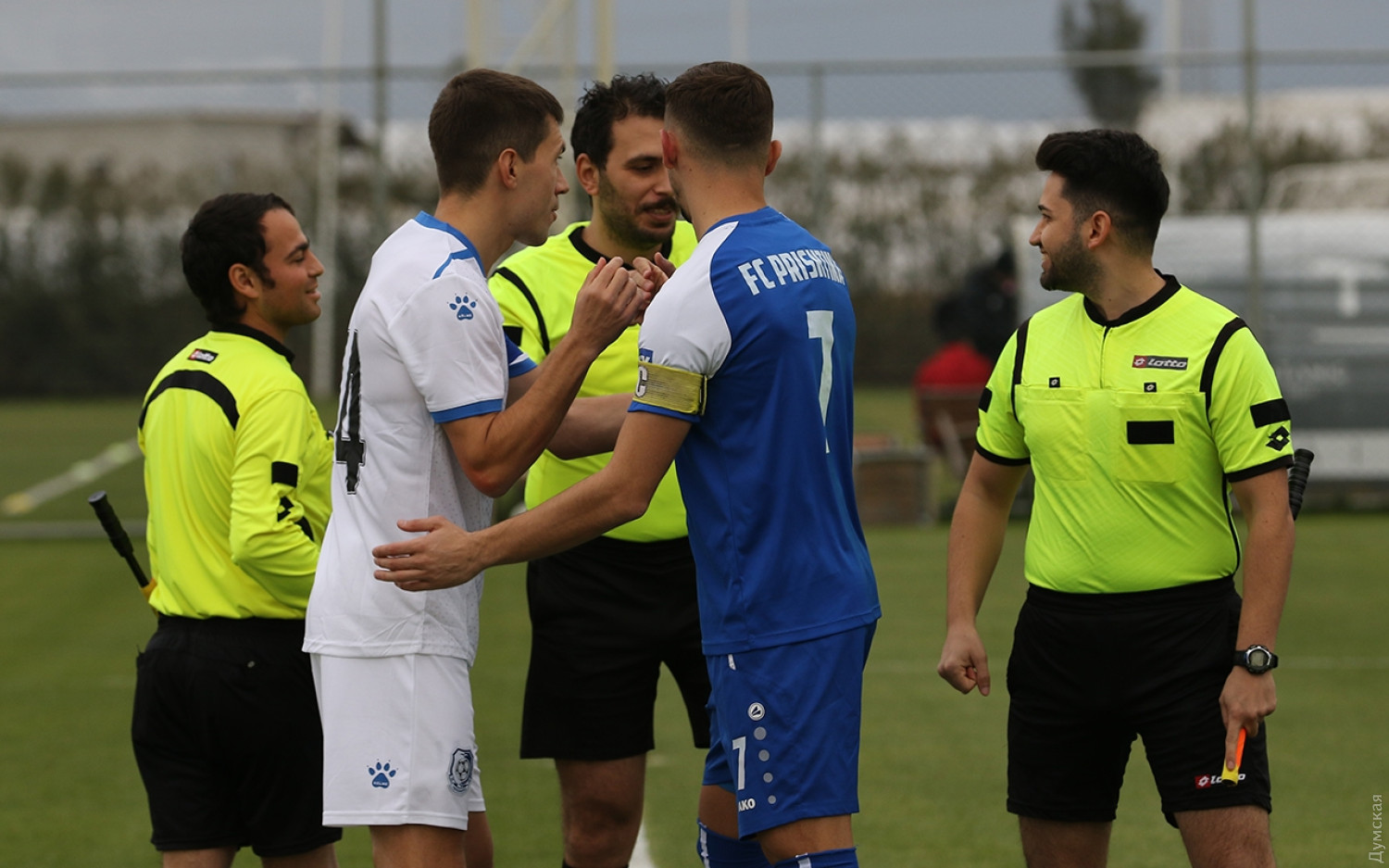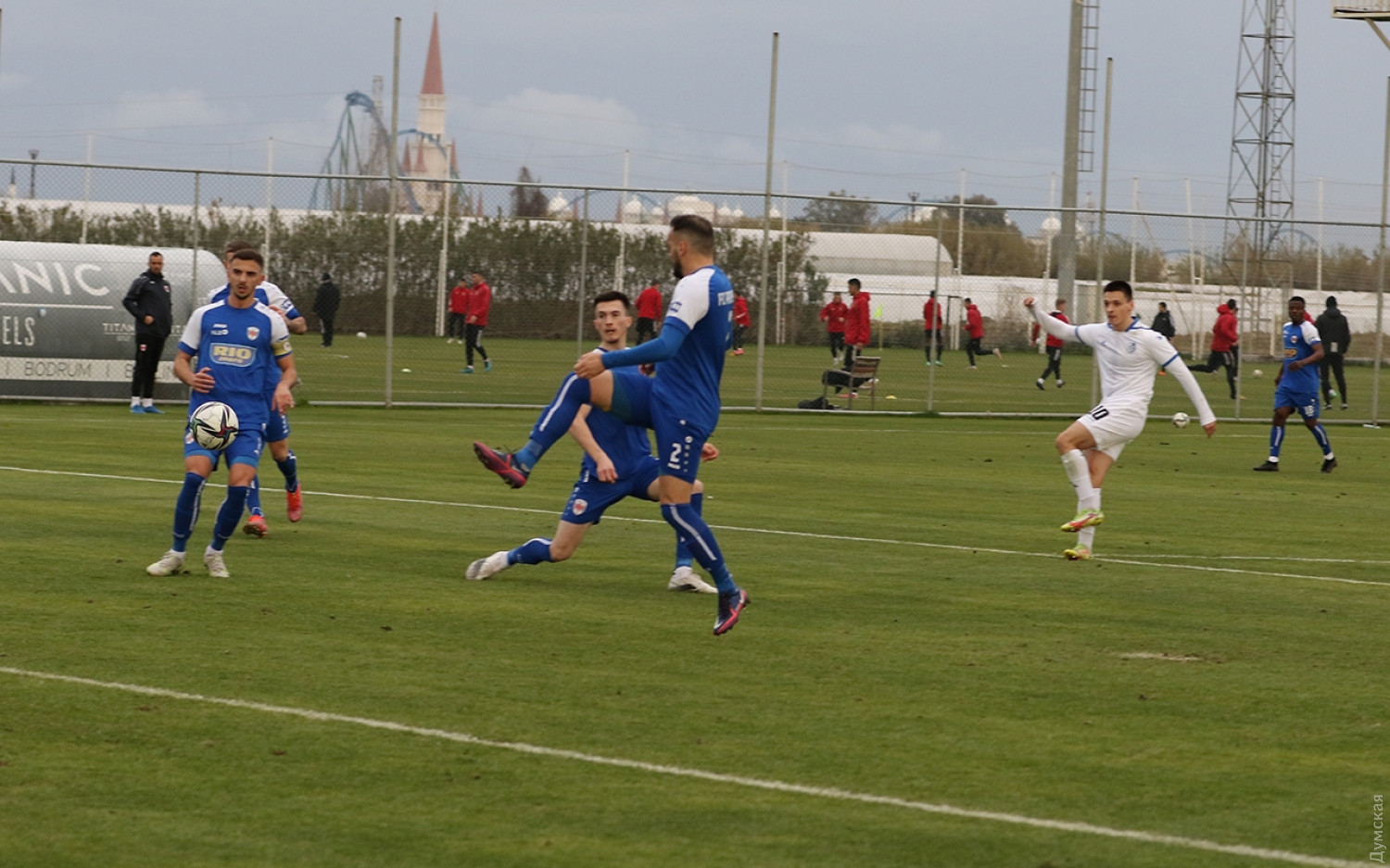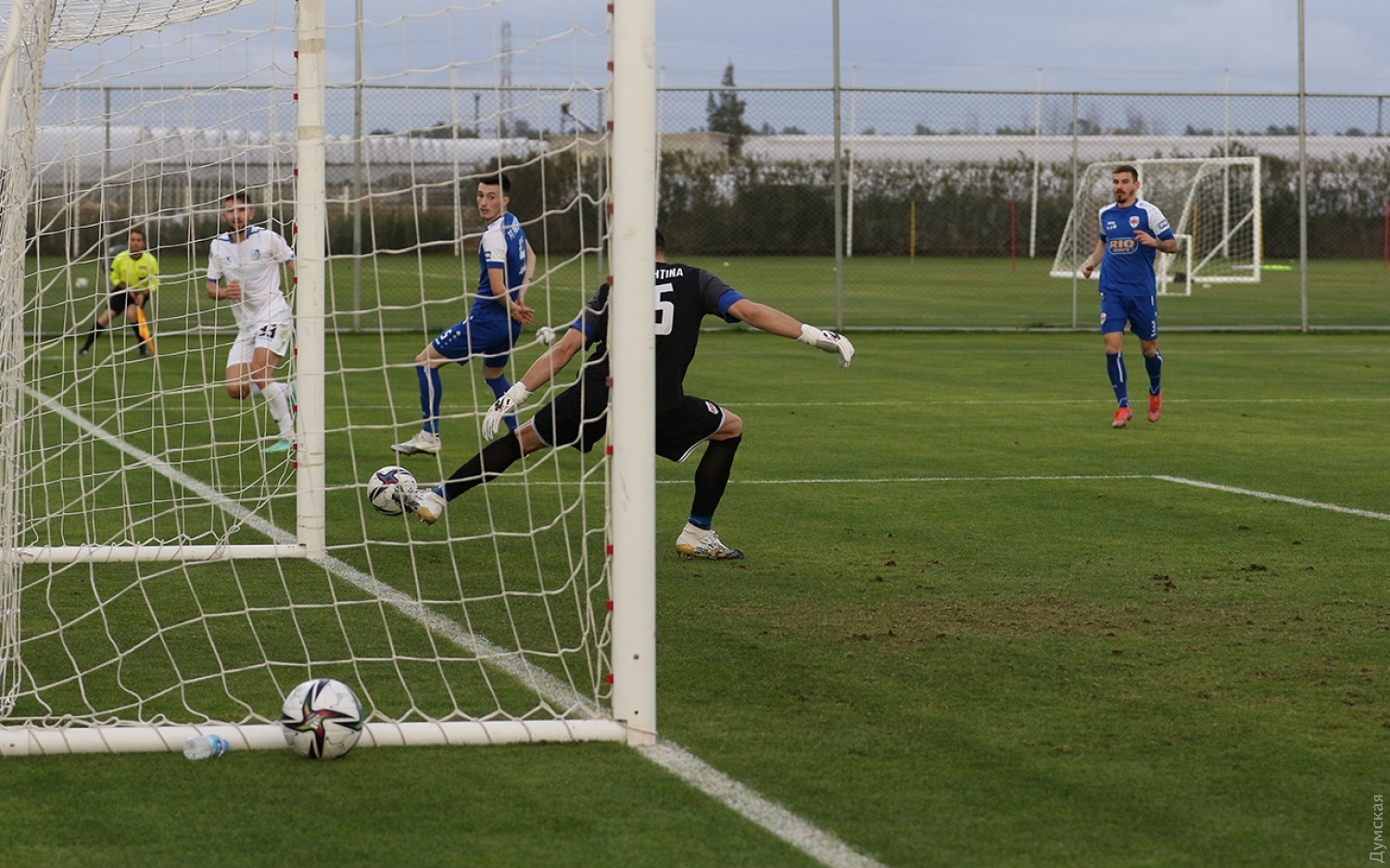 Пожалуй, лучшим в первые полчаса в составе одесситов был Евгений Паст. «Приштина» не ставила неразрешимых задач перед обороной «моряков», но, когда надо было, Евгений играл надежно и хладнокровно. Эта уверенность передалась полевым игрокам, и в период с 30 по 33-юю минуты одесситы организовали два гола. Сначала Борислав Цонев после подачи углового первым сориентировался в штрафной площади и пробил защиту соперника. А затем Денис Кузык аккуратной передачей низом вывел Назария Русина один на один с вратарем «Приштины», и форвард технично поразил верхний угол ворот. Отметим, что Цонев и Русин забили свои первые мячи в составе одесского клуба.