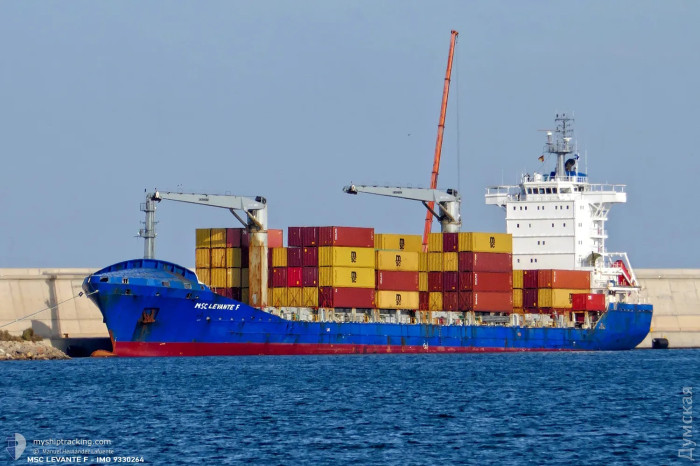 ОНОВЛЕНО О 18:55. За інформацією «Думської», внаслідок атаки балістичною ракетою «Іскандер-М» по портовій інфраструктурі постраждав контейнеровоз LEVANTE F швейцарської компанії MSC під прапором Панами.