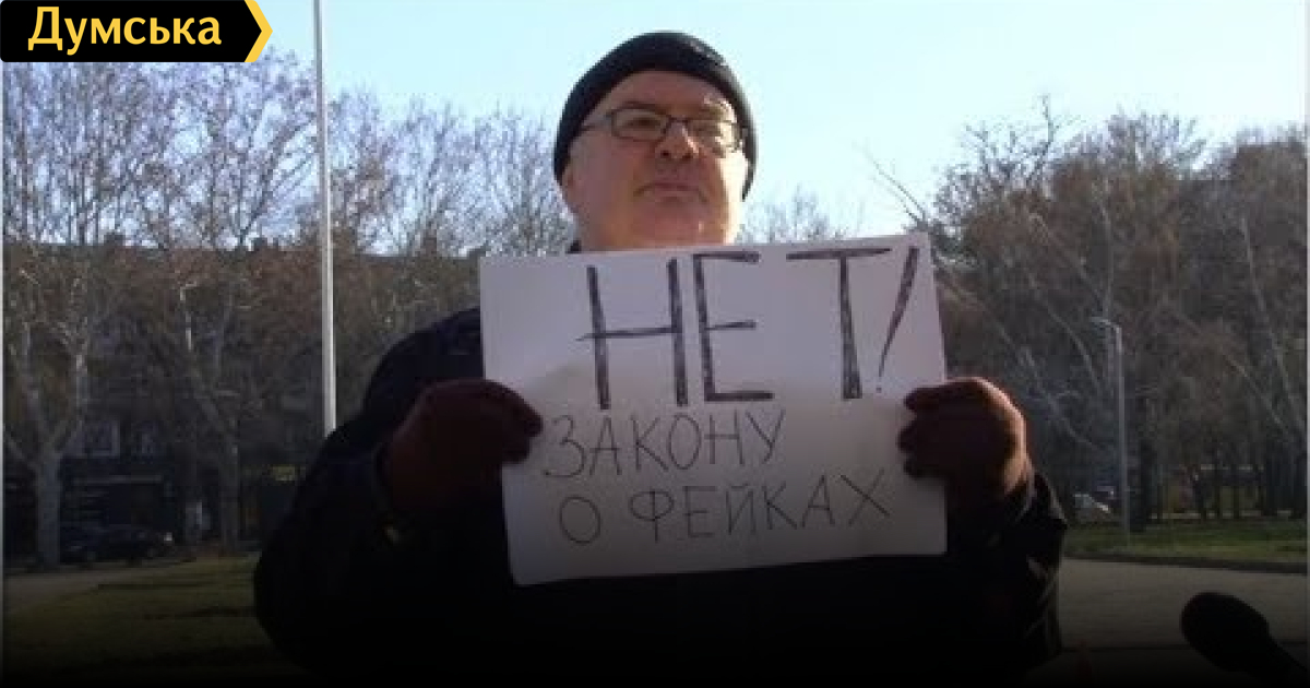Известный одесский журналист Леонид Штекель вышел на акцию против «закона о фейках». Однако запланированный митинг превратился в единичный пикет.
