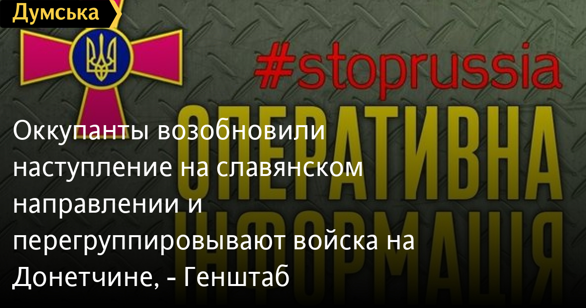 Оккупанты возобновили наступление на славянском направлении и перегруппировывают войска на Донетчине, — ГенштабНачались 93 сутки героического противостояния украинского народа российскому военному вторжению. Как сообщается в утренней сводке Генштаба, на волынском и полесском направлениях значительных изменений в деятельности подразделений вооруженных сил беларуси не отмечается, продолжаются мероприятия по усилению охраны участка белорусско-украинской границы. Сохраняется угроза ракетных и авиационных ударов с территории республики. На северском направлении противник продолжает ведение мероприятий по усилению прикрытия участка украинско-российской границы в Брянской и Курской областях, к ним привлекается до двух батальонных тактических групп из состава воздушно-десантных войск вооруженных сил рф. На слобожанском направлении враг осуществляет подготовку личного состава для доукомплектования мотострелковых, танковых и артиллерийских подразделений. Наносит огневое поражение и проводит дистанционное минирование местности на маршрутах возможного выдвижения подразделений наших войск. На харьковском направлении противник основные усилия сосредотачивает на удержании занятых позиций и сдерживании продвижения наших войск. На славянском направлении российские оккупанты продолжают обстрелы позиций наших войск, возобновили наступление. На донецком направлении оккупанты проводят активные наступательные действия. Продолжают огневое поражение наших подразделений, наносят ракетные удары, перегруппировывают войска. Противник пытается развить успех на бахмутском направлении, нарушить маршруты логистического обеспечения и отрезать наши подразделения от основных сил. На лиманском направлении враг ведет разведку, при поддержке артиллерии пытается закрепиться в населенном пункте Лиман. На южнобужском направлении противник продолжает принимать меры по сохранению контроля над территорией Херсонской области. Увеличив количество обстрелов подразделений наших войск, ведет воздушную разведку, осуществляет инженерное оборудование позиций. Усилил группировку за счет перебрасывания резервных подразделений. В акваториях Черного и Азовского морей корабельные группировки противника продолжают блокировку гражданского судоходства. За минувшие сутки на донецком и луганском направлениях отражены 12 атак врага, уничтожены танк, пять артиллерийских систем, пять единиц боевой бронированной техники и пять автомобилей. Подразделениями противовоздушной обороны был сбит вражеский вертолет Ка-52, крылатая ракета и БпЛА типа «Орлан-10». Истребитель Воздушных Сил Вооруженных Сил Украины уничтожил крылатую ракету в Черновицкой области. СМЕРТЬ РОССИЙСКИМ ОККУПАНТАМ! Заметили ошибку? Выделяйте слова с ошибкой и нажимайте control-enter |