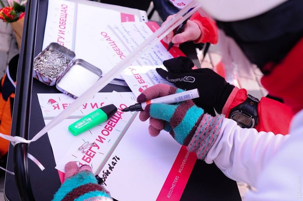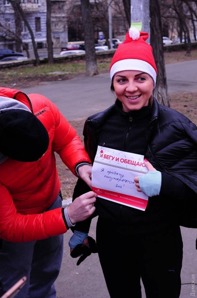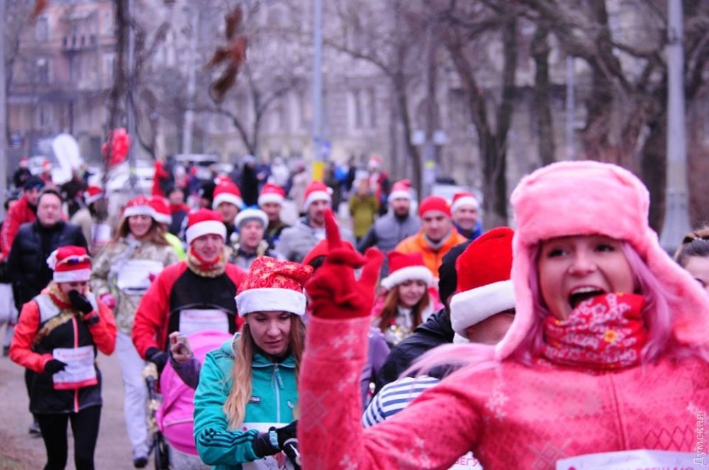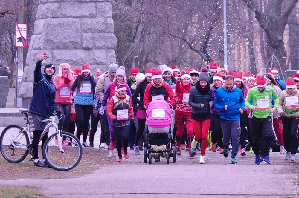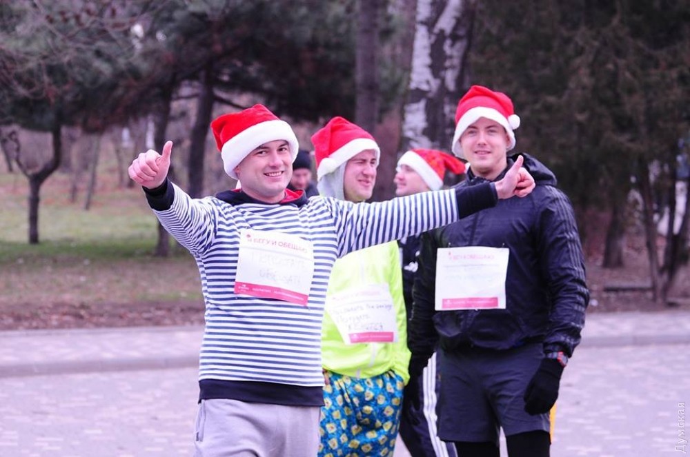 Больше ста человек в головных уборах Деда Мороза и Санта-Клауса приняли участие в новогоднем «забеге обещаний», который прошел сегодня в одесском парке Шевченко. Стартовали они от памятника Кобзарю и пробежали ровно 2017 метров по разным аллеям парка. Каждый участник написал на своем стартовом номере свою главную цель в наступившем году, обещание самому себе, отсюда и название забега. Кто-то пообещал похудеть, кто-то — жениться, кто-то — сдать экзамены на права. Фото — Анатолий Спица СМЕРТЬ РОСІЙСЬКИМ ОКУПАНТАМ! Помітили помилку? Виділяйте слова з помилкою та натискайте control-enter |