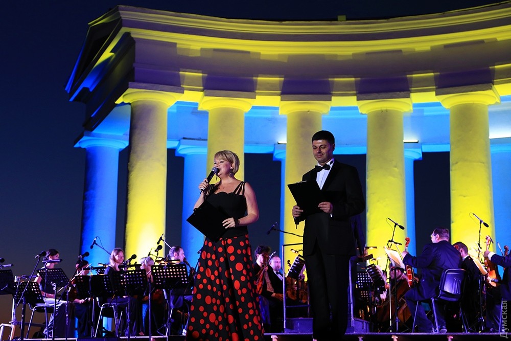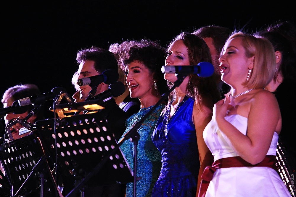 Вчера вечером у Воронцовской колоннады состоялся посвященный Дню города большой двухчасовой концерт артистов одесского Оперного театра.