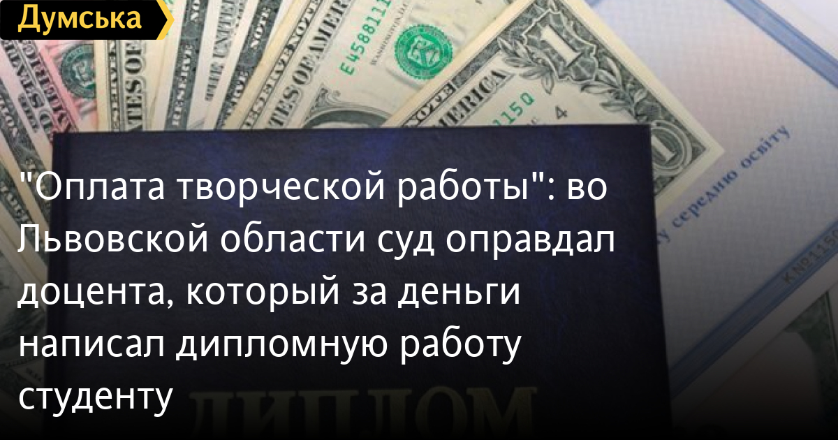 «Оплата творческой работы»: во Львовской области суд оправдал доцента, который за деньги написал дипломную работу студентуДоцента Львовского национального аграрного университета Олега Соколовского, который в 2016 году написал дипломную работу вместо своего студента за 400 долларов, оправдал Жовковский районный суд Львовской области. Как сообщает Zaxid.net, судья посчитал, что это была не взятка. Сначала суды разных инстанций признали преподавателя виновным в получении неправомерной выгоды, но педагог добился пересмотра своего дела. Оправдательный приговор вынесли 6 декабря. Сообщается, что доцент кафедры машиностроения в 2016 году был научным руководителем диплома студента-заочника с другой кафедры и предложил ему написать дипломную работу вместо него за 500 долларов. Студент сбил цену до 400 долларов и принес деньги Соколовскому, который был задержан полицией. В суде преподаватель заявил, что «не требовал неправомерной выгоды, а получил средства как «оплату его научной творческой работы». Суд решил, что в действиях Соколовского не было состава преступления и оправдал его. СМЕРТЬ РОССИЙСКИМ ОККУПАНТАМ! Заметили ошибку? Выделяйте слова с ошибкой и нажимайте control-enter |