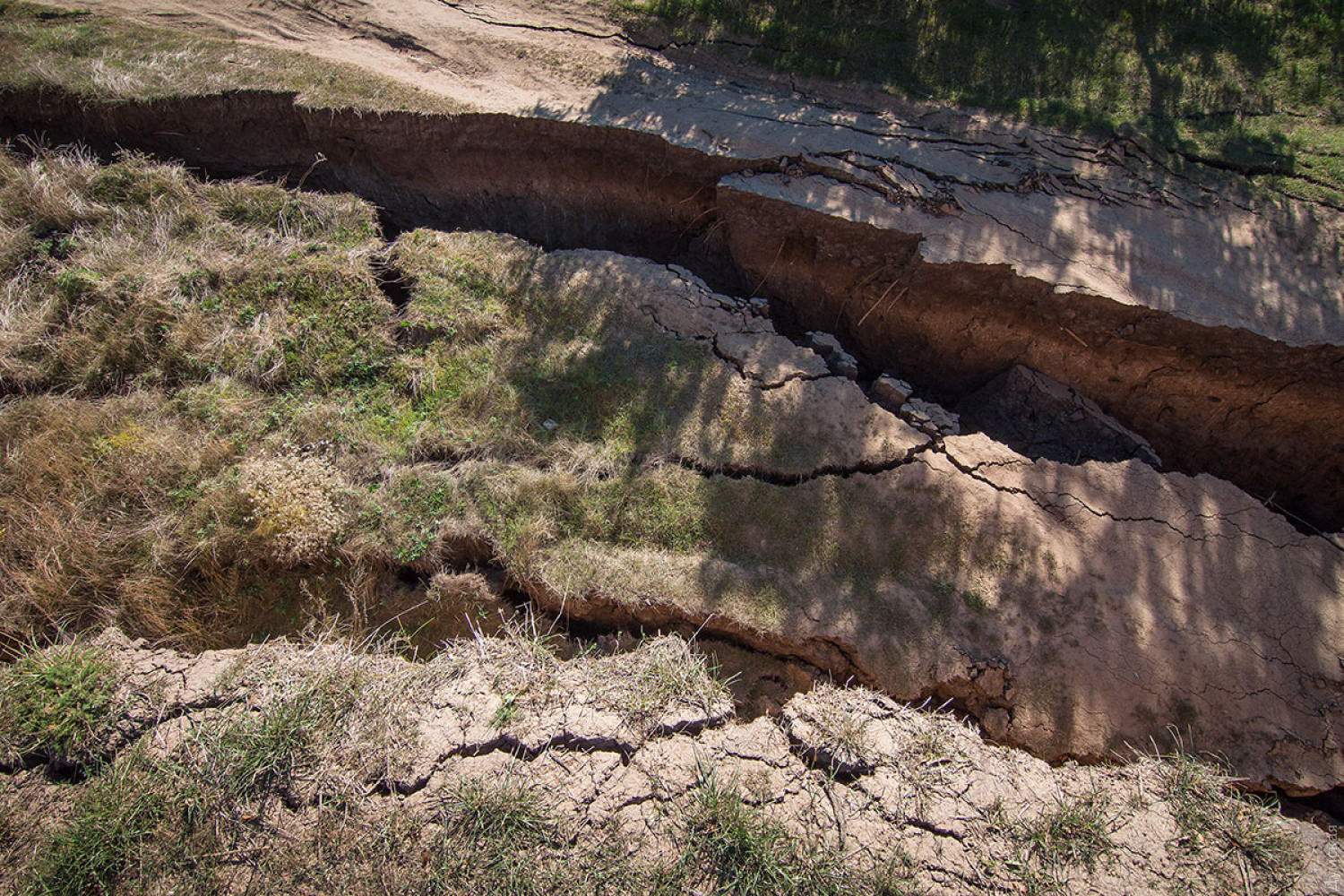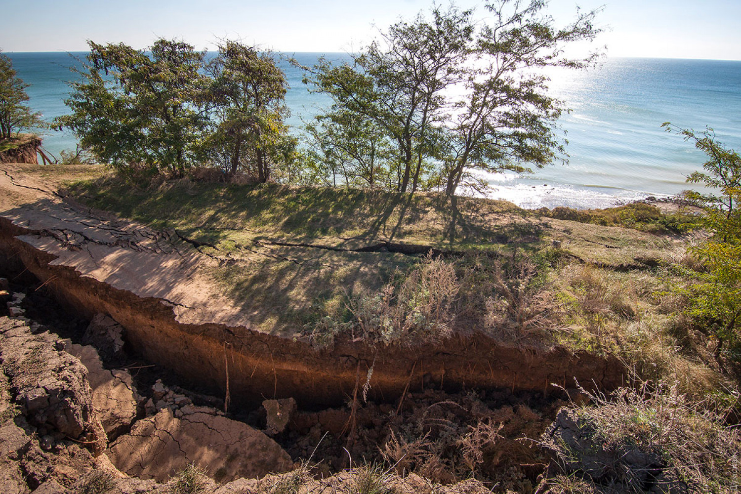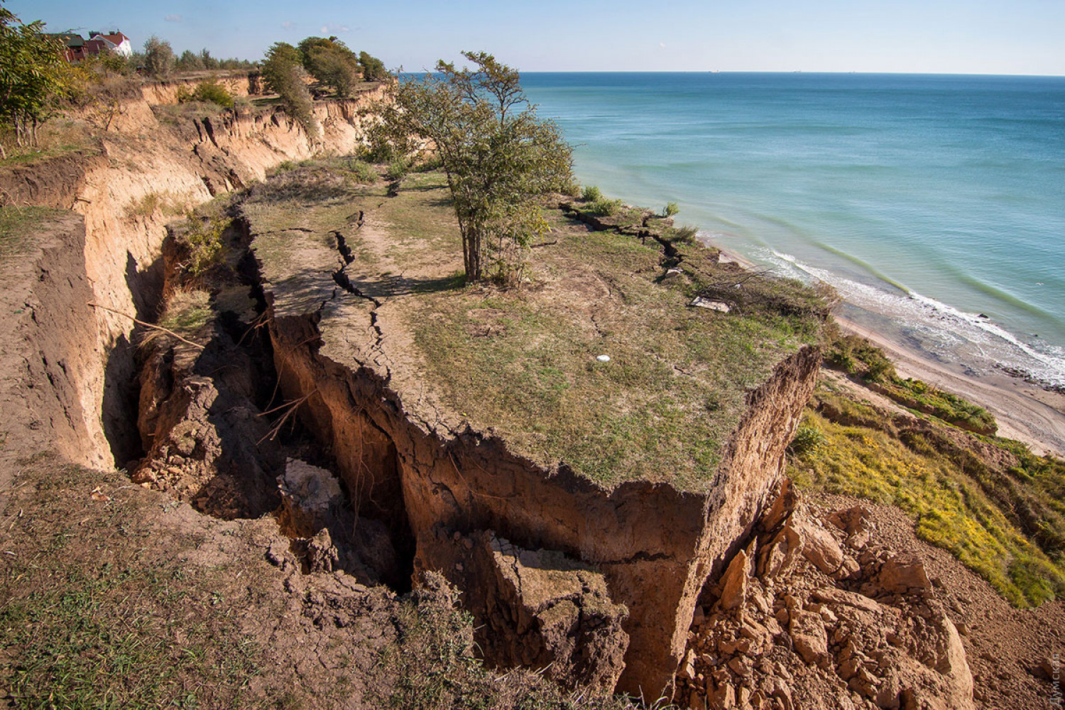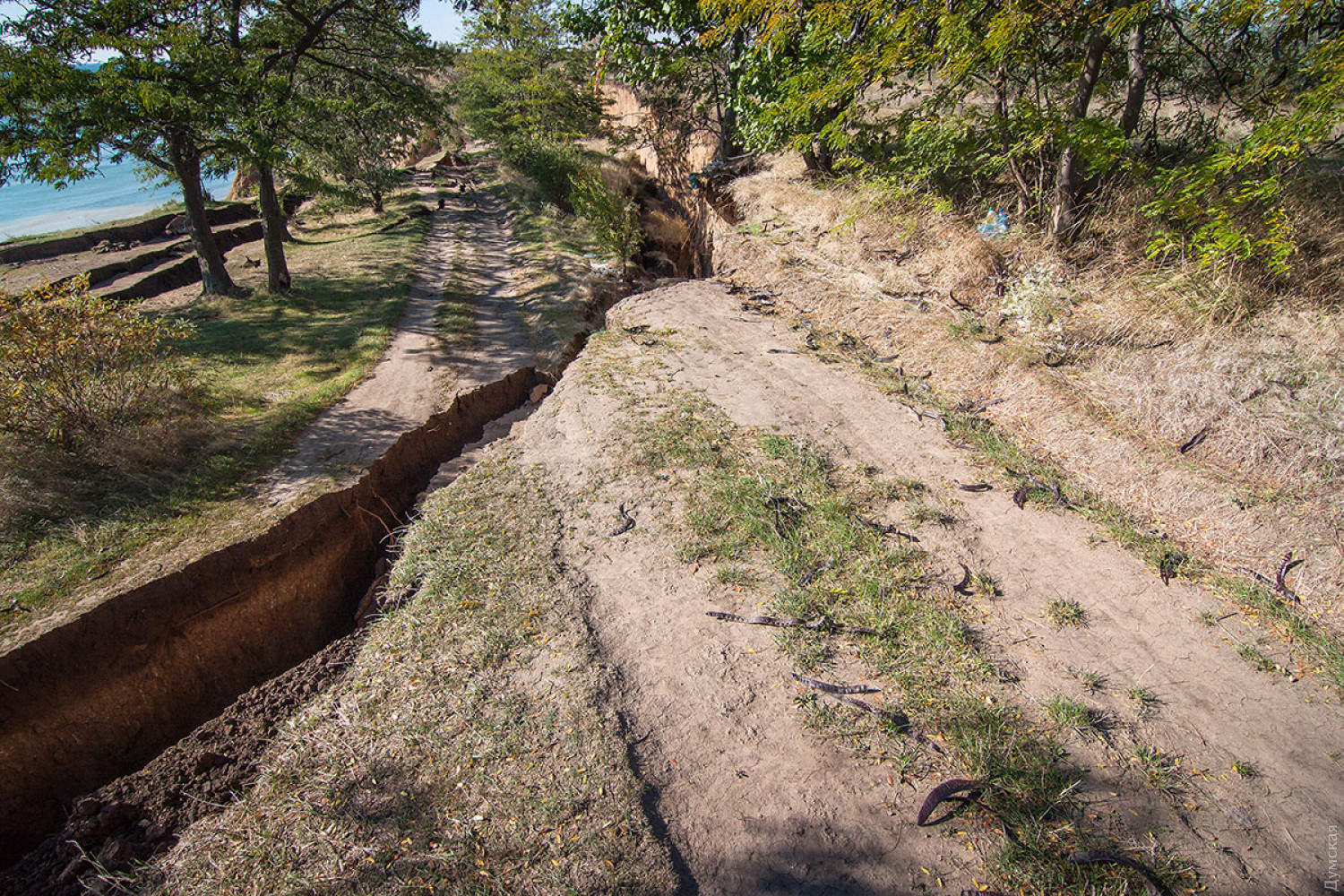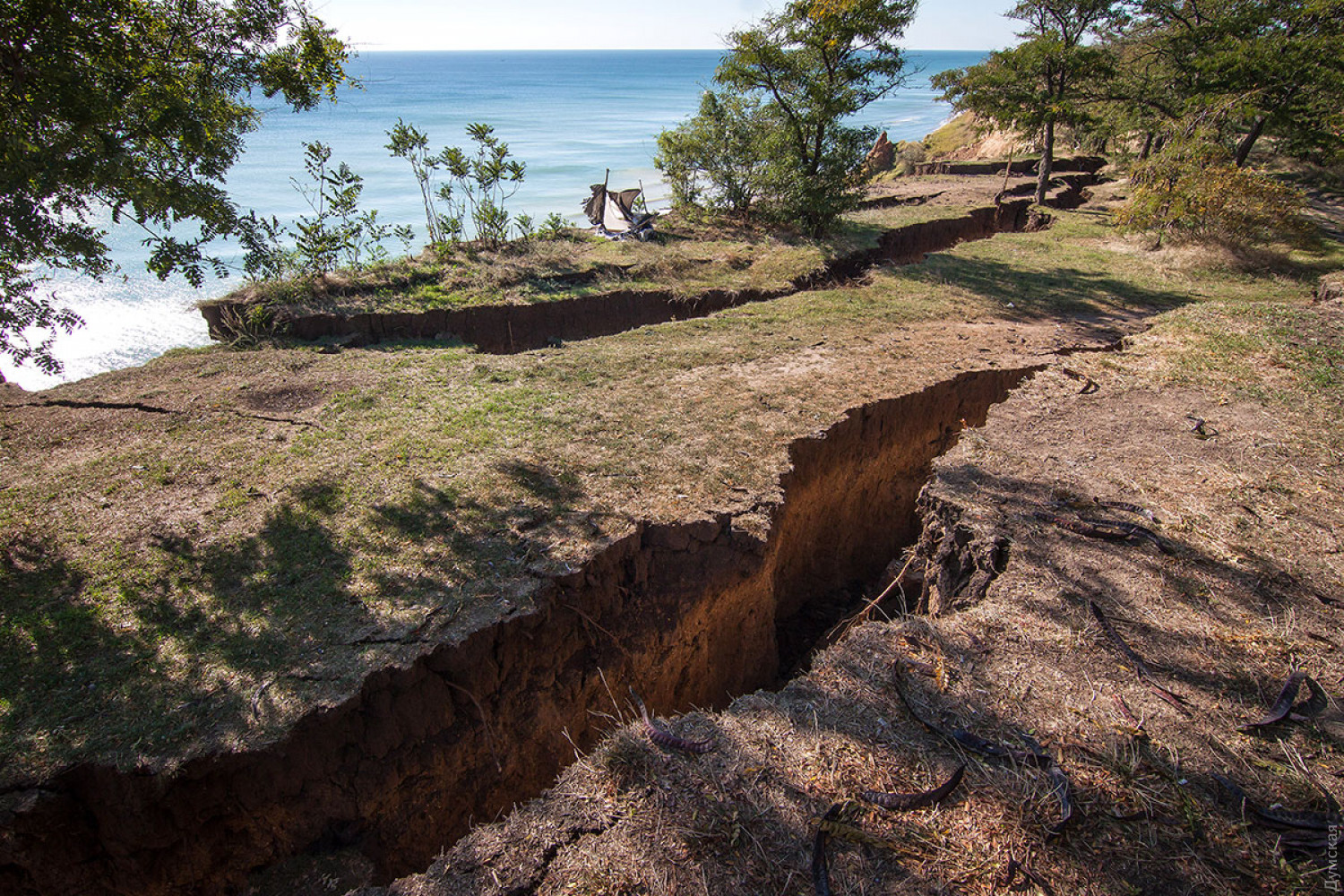 Как он установил, в море сполз участок длиной 300 метров — вместе со спуском для машин и взрослыми деревьями. Часть склона обвалилась, часть грозит упасть в любой момент. До ближайшего дома — не больше 80 метров.