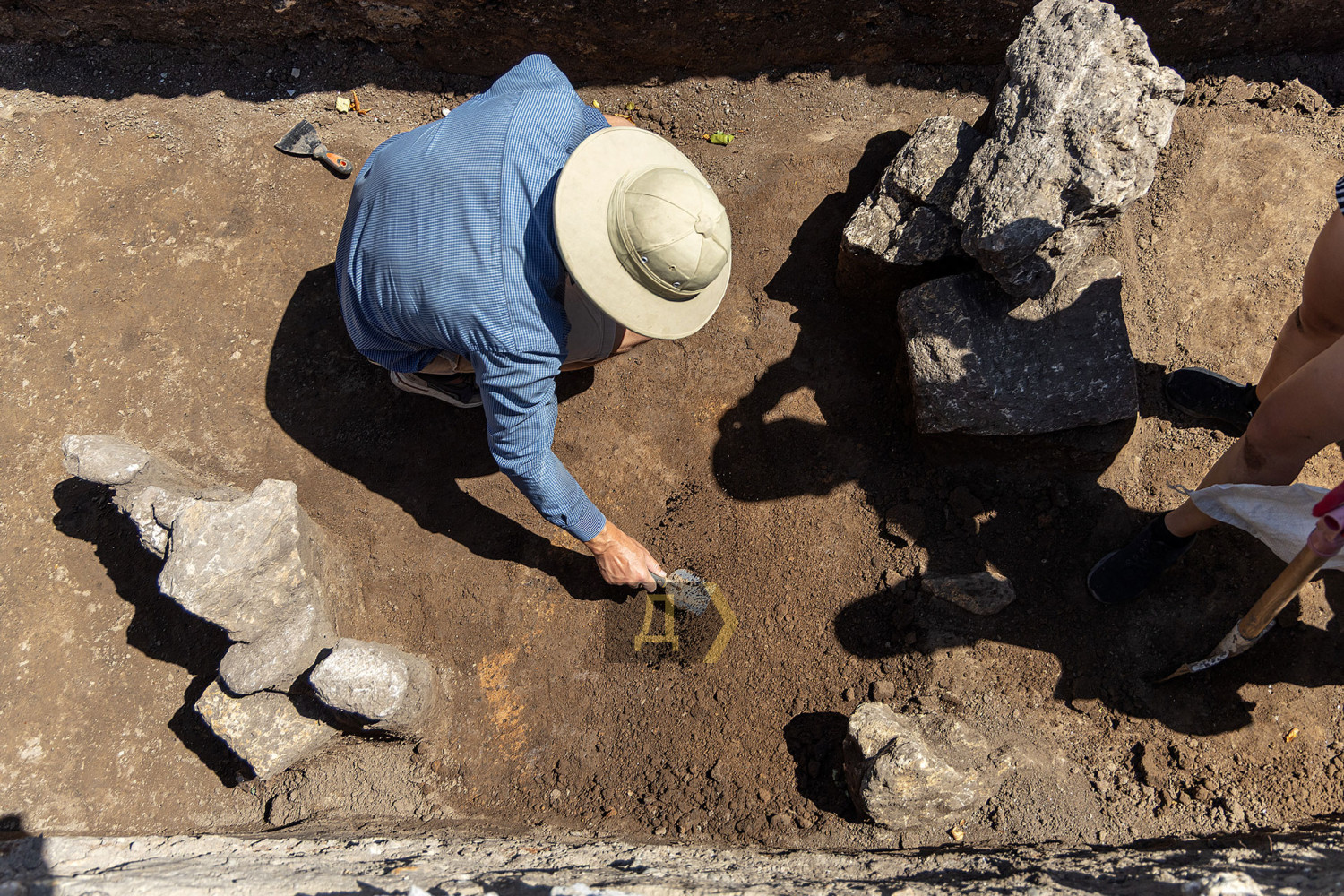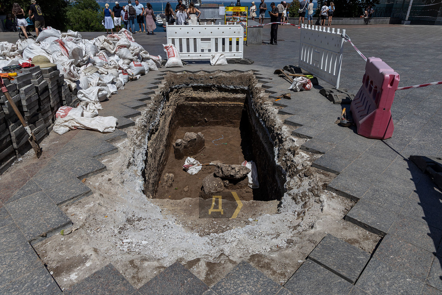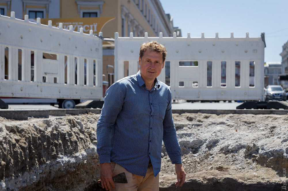 Археологічні розкопки тривають біля підніжжя пам'ятника Дюку де Рішельє, на Приморському бульварі в Одесі. Як передає кореспондент «Думської», експедиція, що стартувала 25 червня, вже принесла перші важливі знахідки — зокрема римський посуд і блоки, які можуть бути залишками легендарної фортеці Хаджибей. Роботи ведуть студенти Південноукраїнського національного педагогічного університету ім. Ушинського та співробітники Інституту археології НАН України (керівник доктор наук Світлана Іванова). Як розповів «Думській» ініціатор і один з керівників розкопок, ректор Педуніверситету Андрій Красножон, місце вибрали не випадково — ще в 2021 році георадарна зйомка зафіксувала тут аномалію, не пов'язану з сучасними комунікаціями. Повторні георадарні дослідження весни 2025 року її підтвердили. «З моменту встановлення пам'ятника Дюку в 1826 році тут нічого не будували, — пояснює Красножон. — Це дало нам підстави вважати, що виявлена аномалія має давнє походження». На ранніх етапах розкопки археологи розкрили щільну забутовку (ймовірно, підсипку під перше мощення Приморського бульвару початку XIX століття), проте подальше поглиблення дало набагато більш давні знахідки. Дослідники вийшли на античний культурний шар. Серед виявленого — господарські ями, залишки глинобитних споруд, скіфська кераміка, уламки амфор V століття до н. е., а також скупчення великих тесаних каменів. Їх походження — окремий привід для дискусій. «Не виключено, що це могли бути залишки фортеці Хаджибей, які були переміщені при її розбиранні, — зазначає Красножон. — Камені важать до 60 кг, мають підтесані грані. Один нагадує капітель (верхівка колони), перевернуту догори ногами. Це матеріал, з якого будують фортечні стіни, висотою до 10 метрів — не звичайні будинки». Додаткову інтригу додає фрагмент чаші, знайденої біля будівельних блоків. Вона може допомогти датувати кладку і прив'язати її до генуезького періоду. «Ми знайшли фрагмент чаші, що датується XIV століттям, що дозволяє припускати, що ці блоки не належать до Хаджибейської фортеці, а є більш ранніми за походженням, можливо, італійської факторії Джинестра», — пояснив вчений. Виявлена в античному горизонті римська червонолакова миска — перша подібна знахідка на цій ділянці — розширює часові рамки пам'ятки аж до перших століть нашої ери. «Досі вважалося, що на місці Одеси в античності існувало грецьке поселення V–III століття до н. е., — каже Красножон. — А тепер ми вперше фіксуємо перші ознаки можливої присутності людей за часів Римської імперії». Історик відзначає ще один цікавий аспект — античний шар товщиною понад один метр з'явився на південь від Дюка, тоді як на півночі, де проводилися розкопки в 2021 році, його не було. На думку археологів, поселення могло обмежуватися мисом і яром, в районі сучасних Потьомкінських сходів. Це також збігається з логікою розміщення фортифікаційних споруд — можливо тому десь тут стояв замок Хаджибей, взятий штурмом загоном Хосе де Рібаса. «Якщо раніше у нас було ясне невідання щодо археологічної ситуації під напівциркульною площею, то тепер ми перебуваємо в стадії туманного напівзнання, — резюмує Красножон, — Але це вже великий крок до розуміння стратиграфії (взаємне розташування культурних шарів відносно один одного і природних порід, що їх перекривають, — Ред.) цього складно