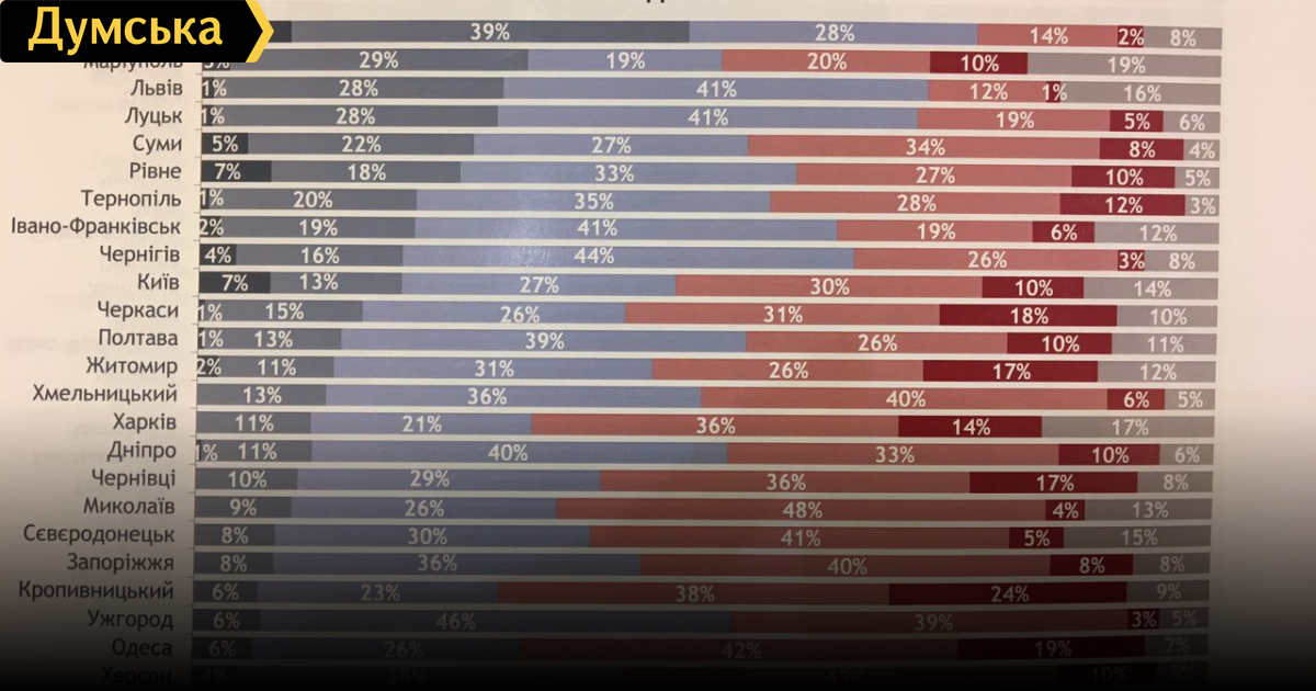 Тема опроса не раскрыта Сколько человек голосовало по каждому городу? Особенно мне интересны результаты Мариуполя! Хоть раз бывали в Мариуполе? Те кто бывали в Мариуполе поймут о чем я. Дальнейшие сравнения даже приводить не буду. Считаю опрос притянутым за уши и не обоснованным.