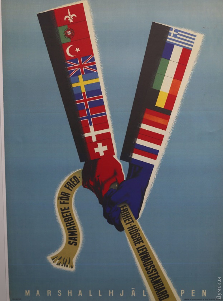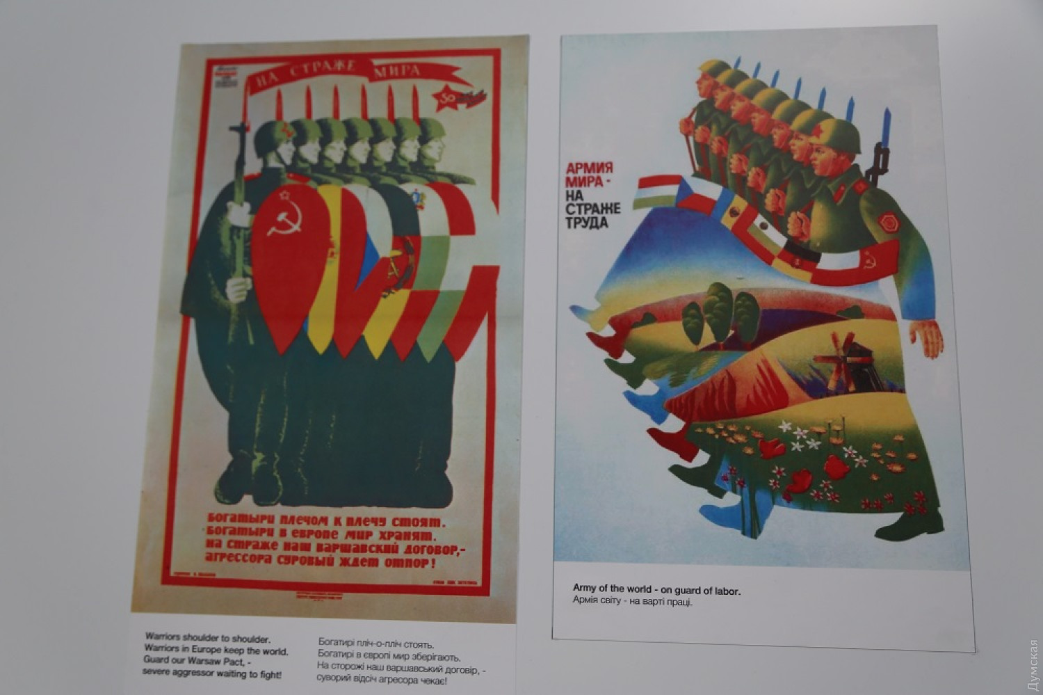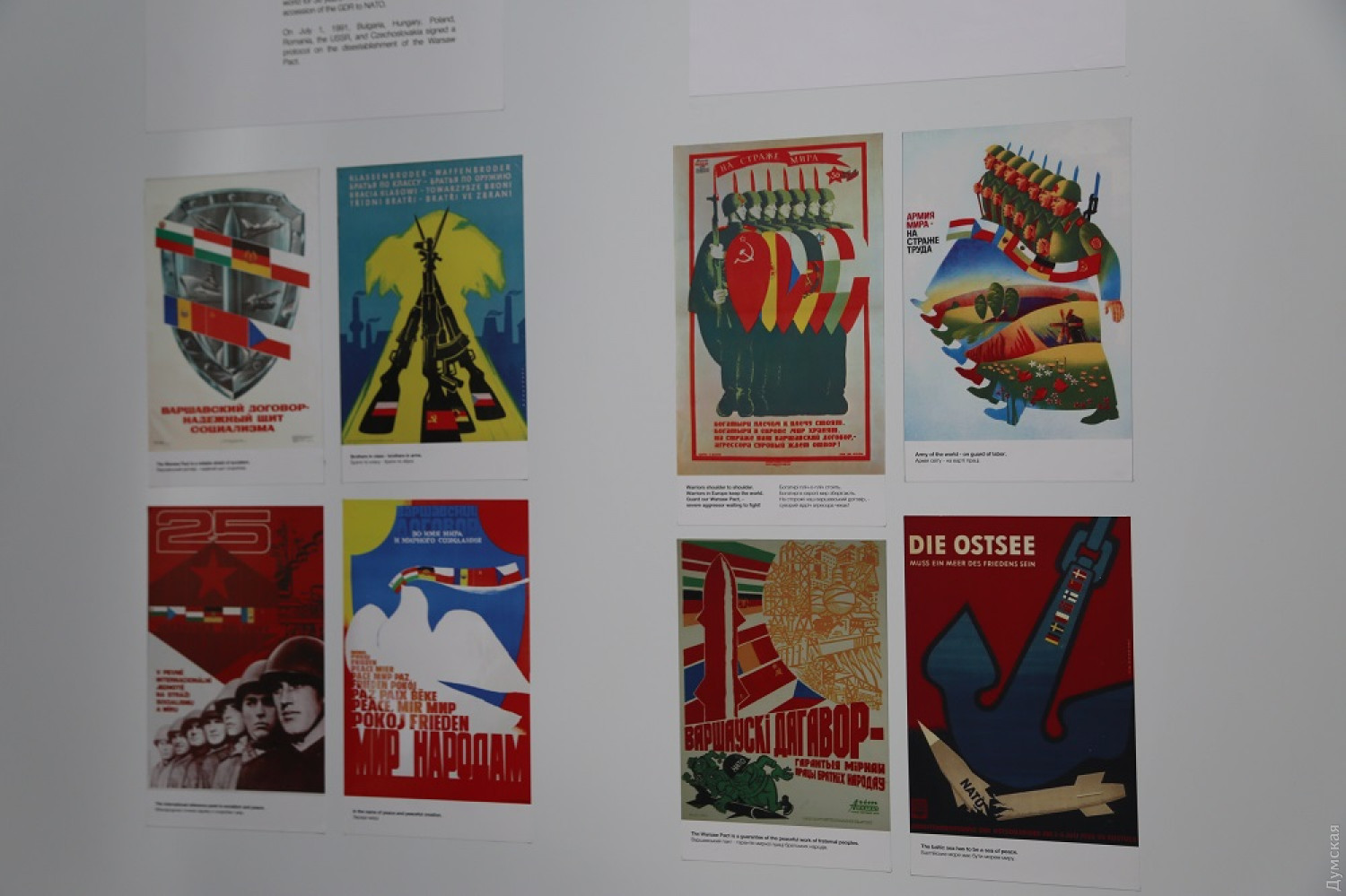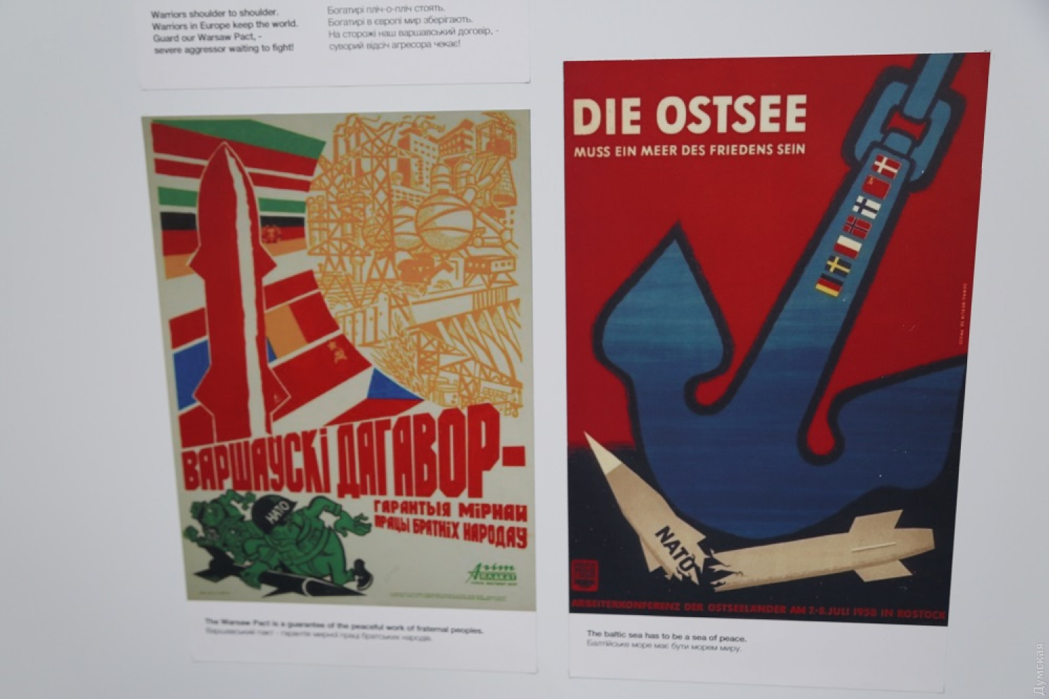 Выставка плакатов времен Холодной войны открылась в Одессе. Посмотреть на пропаганду второй половины прошлого века можно в «черной комнате» на втором этаже музея Западного и восточного искусства. Выставка продлится до 9 июля включительно, передает корреспондент «Думской». Большую часть экспозиции занимают плакаты, которые создавали художники стран Североатлантического Альянса в течение четырех десятилетий, с 1949 года, когда образовалась НАТО, до падения Берлинской стены. Меньшая часть отведена пропагандистскому творчеству стран Варшавского договора — СССР и сателлитов. Надо сказать, что картинки «НАТОвской военщины» больше посвящены обороне и вообще выглядят менее агрессивными, чем советские. Вот Альянс как зонтик для Европы, вот лозунг «Сила — в общей работе». НАТО, изображенная человечком, бережно держит на руках земной шар. Другой плакат — птички вьют гнездо, люди подают друг другу руки, лебедка поднимает страны континента вверх. Плакаты коммунистических стран в основном изображают солдат и оружие: «Варшавский договор — надежный щит социализма», «Армия мира — на страже труда». Разница очевидна. Выставку проводит Центр информации и документации НАТО в Украине вместе с общественными организациями "Одесити разом» и Information security. Директор НАТОвского центра Барбора Маронкова в своей приветственной речи на открытии выставки подчеркнула, что Одесса — третий город, где побывала экспозиция. Первыми были Киев и Львов. Выставка приурочена к 70-й годовщине возникновения Альянса: »Это не просто красивые старые постеры. Через эти плакаты мы хотели показать все моменты, связанные с современной историей — историю противостояния тогда и то, что сейчас есть у нас: наши военные проводят тренинги для ваших солдат, наши военные корабли достаточно часто посещают Одессу. Украина сейчас делает все, чтобы стать частью Альянса и Европейского содружества, и мы будем делать все, чтобы это произошло. Я хочу, чтобы, глядя на эти плакаты, вы поняли суть работы НАТО в Европе с первых дней, с момента начала действия плана Маршалла, когда главной целью было восстановить Европу после Второй мировой войны, не дать возродиться германскому нацизму, вернуть Америку на свой континент и противостоять советской экспансии. Главный принцип НАТО — это безопасность. Это мы и хотели показать этой экспозицией», — сказала она. Автор — Алена Балаба СМЕРТЬ РОСІЙСЬКИМ ОКУПАНТАМ! Помітили помилку? Виділяйте слова з помилкою та натискайте control-enter |
