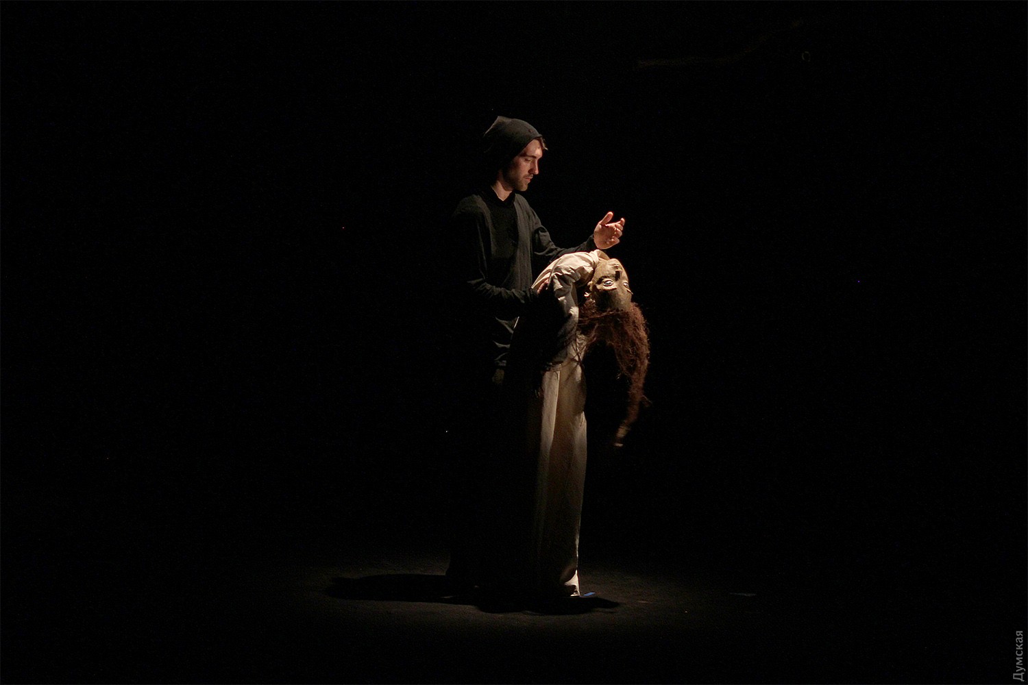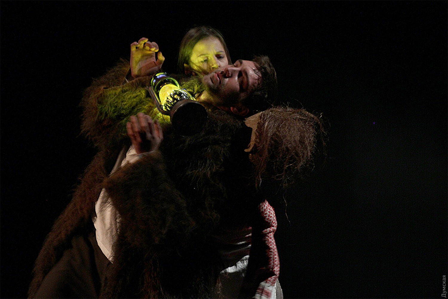 Осторожно, мистификация! Одесский театр кукол предложил взрослым зрителям свою версию «Олеси» КупринаПремьерный показ спектакля для взрослых «Олеся. Мистификация», состоявшийся в кукольном театре при аншлаге, вызвал восторг без всяких натяжек у одесских театралов. Вроде бы снова театр обращается к теме ведьмовства и волшебства, но данная постановка, слава Богу, выгодно отличается от недавнего «Интервью с ведьмами», не к ночи будь помянуто. Все же Александр Куприн не подведет, классик, как-никак, и на сей раз не стали приглашать режиссера издалека. Нашли буквально за стенкой, в украинском театре, молодого и перспективного режиссера Ивана Урывского. В качестве балетмейстера над спектаклем работал Павел Ивлюшкин, актерский же состав оказался смешанным. Так, главного героя, молодого барина Ивана Тимофеевича, играет актер украинского театра Вадим Головко, а загадочную ведьму Олесю – актриса театра кукол Ангелина Смиян. Между мужчиной и женщиной (или мужчиной и куклой) все время происходят какие-то химические процессы, за которыми весьма интересно наблюдать. И тот факт, что Куприн представлен в переводе на украинский язык, нисколько не затрудняет восприятие – текст очень поэтичный, грамотный, красивый. «Это история о двух влюбленных, которые были настолько разными людьми, насколько это вообще возможно В таких случаях Любовь часто трагична. Но, пожалуй, только лишь это чувство способно придать смысл человеческому существованию Это история борьбы двух миров — языческого и христианского, противостояния цивилизации и дикой природы, личности и толпы, «охотника» и «добычи», свободы и зависимости от социума, попытки освободиться и принятие неизбежности Через эти темы и раскрывается тема Любви», — пишется в аннотации к постановке. «Моя мечта, на сцене символический театр! Я вышел из зала в абсолютном восторге от того, что увидел, как режиссер осознанно, внятно пишет картину посредством образов и ассоциаций. Рассказывает внятную историю с точной структурой и высказывает внятную мысль. Я купался в художественном произведении, и, несмотря на мои личные расхождения в мировоззренческих взглядах с автором (это неважно, все мы разные), я очень рад, что театр выходит на новый уровень качества, где существует здоровый баланс между осознанностью и безумием. Дорогие зрители, дорогие театральные деятели, давайте расти и поднимать планку, давайте делать такой театр, давайте брать пример и тянуться вверх. Спасибо огромное за спектакль, низкий поклон!» — не скрывает своего восторга режиссер Денис Костырко. «Этот спектакль, для меня лично, в какой-то степени, своеобразное открытие, — радуется продюсер Людмила Нечаева. — Очень интересно было наблюдать взаимный симбиоз актеров и кукол. Спектакль очень живой, настоящий, без фальши и глянца. Прекрасная демонстрация того, как русская классика укладывается в национальный колорит украинской глубинки. Камерность постановки дает возможность полного погружения! И, безусловно, респект Ивану Урывскому! Типажи главных героев, атмосферность, философия притчи с определенной долей сакрализации сюжета, использование натуральных материалов в костюмах и сценографии — узнаваемые черты режиссерского почерка». Романтичная история рассказана при помощи ряда аттракционов, так что не будем лишать будущих зри