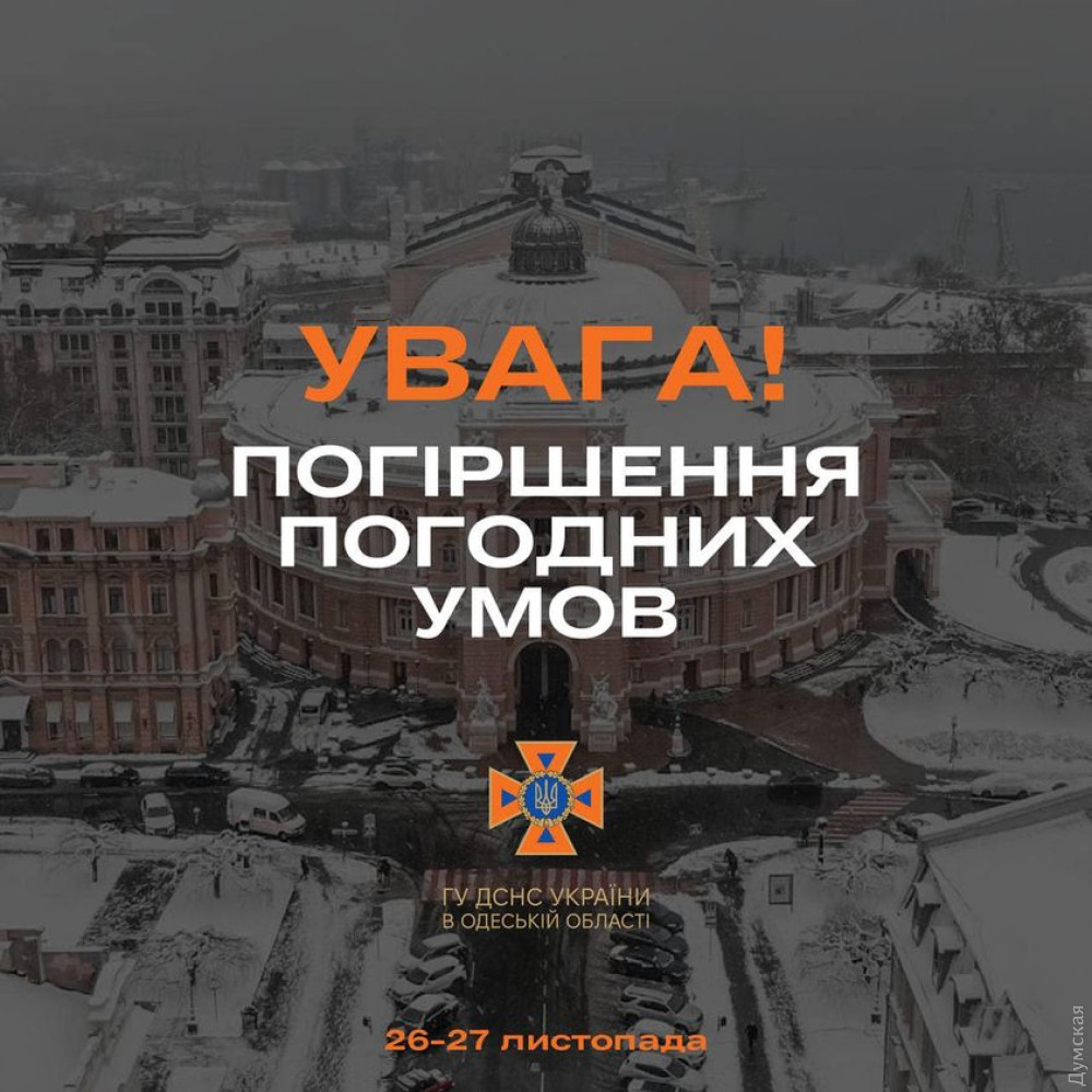 Сильний мокрий сніг і дощ, подекуди ожеледь, хуртовини та снігові замети й ожеледиця очікуються в Одесі та області 26-27 листопада.