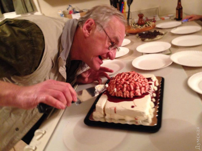 Одеса, КДБ і зомбі: зірка «Світанку мерців» про культову сцену і підтримку України (фото, відео)Його знають усі фанати жахів. Культова сцена в «Світанку мерців», де зомбі зносить голову лопаттю вертольота, увійшла в золотий фонд кіно. Актор Джим Крут, який зіграв того самого «Зомбі-гелікоптера», — не просто статист. Він ветеран В'єтнаму, актор авангардного театру, а головне — друг України, наш прапор на його аватарці. В ексклюзивному інтерв'ю він розповів, як у 1978-му був в Одесі і знімав Потьомкінські сходи під наглядом КДБ, а також чому сьогодні він закликає армію голлівудської нечисті донатити на ЗСУ. Як ви розумієте, готувати хелловінський матеріал ми довірили Дмитру Жогову — штатному фахівцю з усілякої нечисті та моторошності будь-якого роду. Минулого року йому вдалося підняти з глибин Кришталевого озера самого Джейсона — громилу в хокейній масці, який, втім, виявився цілком адекватним малим і розповів, як би він розправився з Путіним. Читати тут. Після такого складно тримати марку, але Жогов у цьому фахівець. Читайте і жахайтеся історії «зомбі-гелікоптера», легендарного персонажа короля хоррорів Ромеро! КРОВАВА КУЛЬТОВА СЦЕНА Не знаєте? Тю! Його знає кожен любитель фільмів жахів! І навіть ті, хто не любить жахи, верещали від переляку, розкидаючи попкорн і ховаючи обличчя, — ті теж його пам'ятають. Одинадцять секунд його появи на екрані перевернули світ кіно, і він ніколи вже не буде колишнім. У різних країнах цю сцену викреслювали, охороняючи моральність і мораль. Фільм майстрів Джорджа Ромеро і Даріо Ардженто «Світанок мерців» — муміфікована класика (в хорошому сенсі слова), тобто на століття. Що ж було в цій сцені? Головний герой поспішно заправляв вертоліт, озираючись по сторонах, тому що зомбі вибиралися з найнесподіваніших місць. І ось, невідворотний, як акула в «Щелепах», один — з витягнутим черепом, синюшний мерці — повільно наближається до вертольота. І його, як на зло, не бачать. Та озирніться! Гей! Він вас вкусить! Він уже долає барикаду з якихось коробок, за два кроки від вас! Але шум вертольота заглушає все, і герой, занурений у свої думки, не бачить огидного трупа. І тут Бог змилостивився: мерцю, що виліз на коробки, лопаттю зносить верхівку голови. І все! Слава зомбі без голови забезпечена. Тисячі фанатів ревуть на конвенціях і комік-конах: ЗОМБІ-ГЕЛИКОПТЕР!!! Ця сцена внесена до Золотого фонду кіно — в десятку кращих смертей зомбі. А Джим Крут, так звуть цього сивочолого джентльмена, який зіграв зомбі, роздає автографи, продає всілякий мерч і цілком задоволений таким приварком до пенсії. Йому просто весело тусуватися з шанувальниками. Але чому ми вибрали саме його для інтерв'ю? Адже культовими зомбі Голлівуду також є і Зомбі-Конкістадор з опаришами в очниці, і зомбі з відбитком протектора на обличчі, і зомбі, повішений на мотузці від церковного дзвону, і, нарешті, «Зомбі-мачете» — чувак, якому всадили в череп тесак. Але справа в тому, що Джим — чудовий співрозмовник і унікальна особистість. Він був бойовим медиком у В'єтнамі і грав у професійних театрах — у Pittsburgh Laboratory Theatre, де ставили п'єси Ежена Іонеско — театр абсурду, і «Друзів» японського драматурга Кобо Абе. Джим Крут — не «випадковий статист», як часто буває із зомбі, яких може зіграти будь-який п'яниця або бродяга. Він — актор, який грав в авангардних п'єсах! Джиму зна