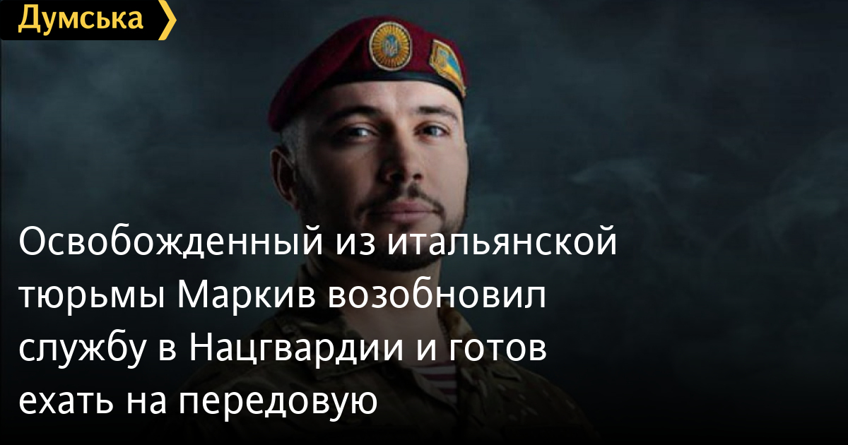 Освобожденный из итальянской тюрьмы Маркив возобновил службу в Нацгвардии и готов ехать на передовуюУкраинский военнослужащий Виталий Маркив, который был освобожден из итальянской тюрьмы после 3,5 года пребывания, восстановился на службе в Национальной гвардии Украины. Об этом Маркив рассказал в интервью LB.ua. «Службу я уже возобновил, — сообщил Маркив. — Официально нахожусь сейчас в отпуске. У меня 26 дней, чтобы пройти медицинский осмотр, реабилитацию. Затем планируем с женой на несколько дней поехать в отпуск где-то на территории Украины. После будет служба в Национальной гвардии Украины. Я вернусь в свой батальон». Маркив заверил, что заниматься политикой вроде Надежды Савченко не собирается. «Военнослужащие должны быть вне политики. Свои политические взгляды, по моему мнению, военнослужащий должен выражать во время тайного голосования», — отметил Маркив. При этом он добавил, что уже готов ехать на передовую, но обязан пройти медосмотр и все протокольные процедуры. «Привык по жизни заканчивать вещи. Если посвятил себя военной службе, тем более, что у меня подписан контракт на 5 лет, то вижу будущее пока в военной карьере. Не просто служить для галочки, к какому-то определенному званию. Я этим живу. Горжусь. Для меня военная форма имеет огромное значение. Для меня честь служить Украине», — резюмировал Марков. Напомним, в июле 2019 года итальянский суд признал Маркива виновным в смерти итальянского журналиста Андреа Роккелли в 2014 году. Маркив был приговорен к заключению сроком 24 года. При этом адвокаты Маркива требовали освобождения украинца из-за недостатка улик. 3 ноября 2020 года Апелляционный суд Милана оправдал Виталия Маркива — он находился в итальянской тюрьме с июня 2017 года. СМЕРТЬ РОССИЙСКИМ ОККУПАНТАМ! Заметили ошибку? Выделяйте слова с ошибкой и нажимайте control-enter |