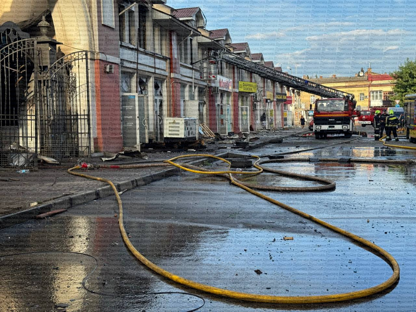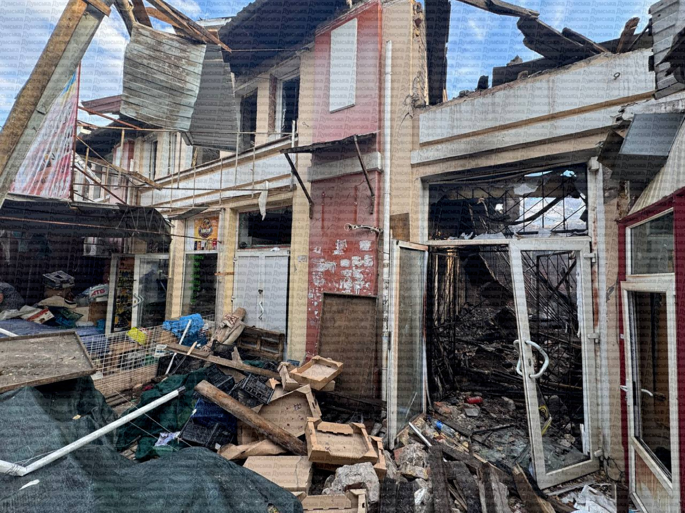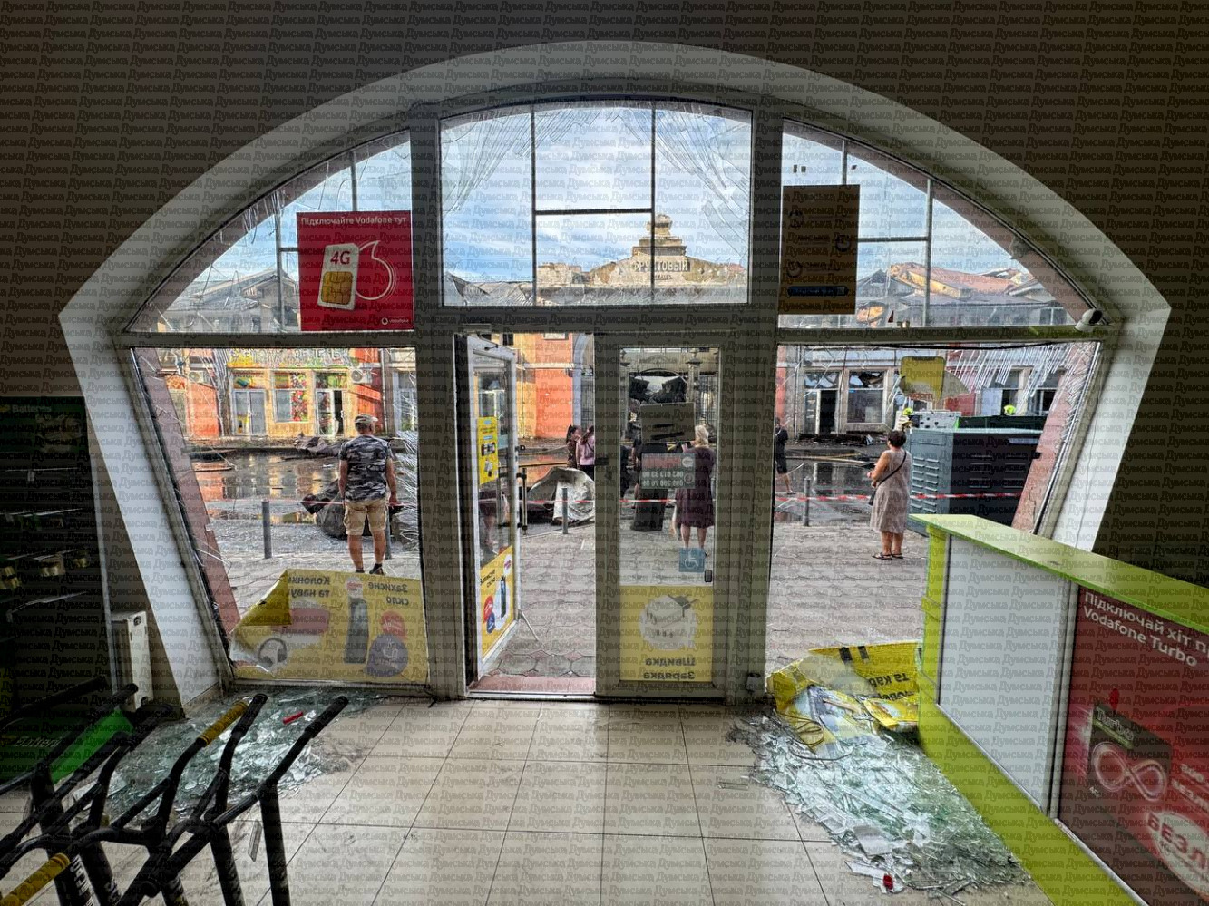 Як передає кореспондент «Думської», зруйновано історичні будівлі фруктового павільйону, уламки дронів лежать серед торгових рядів. Люди рятують уцілілий товар.