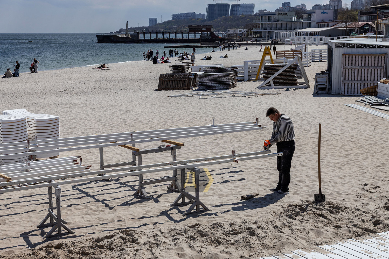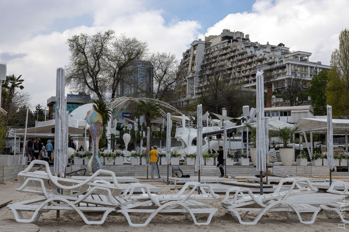 Уже совсем скоро в Одессе стартует курортный сезон. В город потянутся туристы со всей Украины — как ни крути, Одесса остается главным (единственным условно безопасным) морским курортом страны. Корреспондент «Думской» прошелся по побережью, чтобы проверить, насколько пляжи готовы встречать гостей. Просеян ли песок, открыты ли шалманы — в первой части нашего прогулочного репортажа от Аркадии до Ланжерона. Погода, конечно, не балует. Солнце есть, но ветер такой, что долго на одном месте не задержишься. Стартуем с Аркадии — главного пляжа города. Здесь, несмотря на то, что подрядчик все еще возится с ливневкой, пытаясь увести выпуск глубже в море, основные площадки уже активно готовятся к сезону. Судя по темпам, закончить работы вовремя вряд ли успеют — но это, кажется, никого особо не останавливает. «Ибица» уже вынесла пальмы, чистит территорию и, по старой традиции, готовится отгораживать «свою» часть пляжа плотной линией шезлонгов. «Итака» снова собрала уходящий в море помост, приводит в порядок бассейн и наводит привычный лоск. «Боно», судя по всему, тоже откроется, «Портофино» слегка освежило внешний вид. Людей в Аркадии уже много — все словно ждут первого настоящего тепла, чтобы окончательно перейти в режим «море-песок-загар». Дальше — «Санторини». Пляж, на котором жизнь, кажется, не останавливается даже зимой. Сейчас тут снова людно, работают заведения. Напомним, в прошлом году здесь установили стационарные зонтики — теперь это полноценная круглогодичная локация. Зато море за зиму отыгралось — съело заметную часть пляжа. Настолько, что пройти дальше, к гидробиологической станции университета, стало проблематично. Намывать песок, судя по всему, никто не спешит. Следующая точка — «Калетон». Здесь, наоборот, работа кипит: подсыпали песок, заметно расширили пляж, расставляют мебель, чистят территорию, завезли пальмы. Контраст особенно заметен буквально за поворотом — там, где пляж остается без хозяина. Волны подмыли подпорную стену, и она выглядит так, будто может не пережить даже этот сезон. За яхт-клубом — почти пустыня. Сами пляжи не тронуты, инвентарь лежит там же, где его оставили на зиму. Наверху жизнь есть — гуляют люди, но вниз пока никто особо не спускается. На «Птичьем пляже» возле Желтого камня — свой колорит: пенсионер-энтузиаст Владимир украшает пространство и похоже делать это может бесконечно. При этом сезон, по сути, уже начался — пусть и неофициально. Кто-то загорает, прячась от ветра, кто-то играет в волейбол, кто-то гуляет с детьми или запускает воздушных змеев. Есть и те, кто уже открывает купальный сезон — несмотря на температуру воды. Финишируем на Ланжероне. Здесь, как всегда, многолюдно — и, пожалуй, самые заметные подготовительные работы на всем маршруте (если не считать Аркадию). Удалось застать даже «десант» чиновников — пришли разбираться с арендатором, который решил расшириться к сезону. Попытку пресекли, и теперь, по идее, все лишнее должны демонтировать. В остальном Ланжерон выглядит привычно: местами уставший, местами запущенный, но уже готовый к наплыву людей. В целом же картина простая: арендаторы не спешат и ждут настоящего тепла. Как только погода окончательно развернется к лету — пляжи моментально «включатся» и начнут работать на полную. Автор — Альберт Весомых СМЕРТЬ РОССИЙСКИМ ОККУПАНТАМ! 