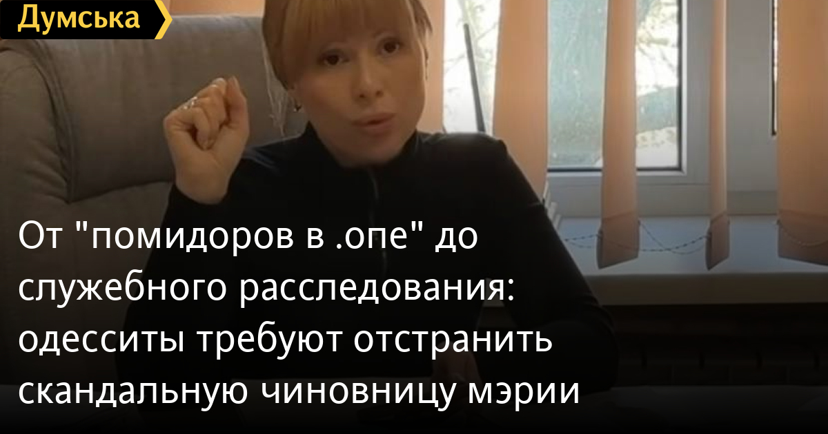 От «помидоров в .опе» до служебного расследования: одесситы требуют отстранить скандальную чиновницу мэрииПетиция с требованием отстранить от исполнения служебных обязанностей скандальную чиновницу мэрии Елену Фокину появилась на муниципальном портале Социально активный гражданин. Автор указывает на возможное использование чиновницей служебного положения для получения бюджетных контрактов ее мужем — Рустамом Бегматовым, в связи с чем начато служебное расследование, передает наш корреспондент. Сбор подписей продлится до 20 июля. Всего надо собрать 1000 подписей. Если нужное количество наберется, обращение попадет к мэру (и.о. мэра), который обязан ее рассмотреть. Отстранение Фокиной на время служебного расследования необходимо для объективной проверки проверки, считает автор обращения. В том числе, чтобы лишить чиновницу возможности давить на свидетелей, уничтожать документы или принимать решения в своих интересах. Также просят обнародовать результаты проверки, а в случае, если нарушения будут найдены — принять дисциплинарные меры, вплоть до увольнения. Напомним, Елена Фокина — заместитель директора муниципального дептранса — начальник управления развития транспортной инфраструктуры. Ее подозревают (пока не официально) в системном лоббировании интересов своего мужа Рустама Бегматова. Фирмы, связанные с ним, выигрывают многомиллионные бюджетные тендеры на строительство и ремонты. Подробнее эту историю мы освещали тут. Также Елена оскандалилась после того, как в сети обнародовали запись ее общения по телефону. Обсценная лексика чиновницы оказалась довольно разнообразна. Ее фразы «с х.я ли в .опе помидоры» и «выпи.дышим их отсюда» быстро ушли в народ и даже превратилась в стикерпак. СМЕРТЬ РОССИЙСКИМ ОККУПАНТАМ! Заметили ошибку? Выделяйте слова с ошибкой и нажимайте control-enter |