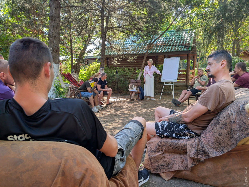 Відпочинок на морі, гіпнотерапевт та гармата 18 століття: як одеська бригада синдром «тривожного серця» долає (фото, відео)Вранці йога після сніданку групова терапія з психологом, вдень відпочинок на морі. А ще верхова їзда, аромо- та звукотерапія. В унікальному таборі для військових створили всі умови, щоб наші захисники могли не лише відпочити, а й повністю перезавантажитися, і повернутися до строю з новими силами Кореспондент «Думської» побувала у Navycamp, Центрі реабілітації одеської 39-ї окремої бригади берегової оборони, де ветеранів буквально витягують із прірви того, що психологи минулого називали синдромом «тривожного серця», а зараз ми знаємо як посттравматичний стресовий розлад. Для Ворона, Ігоря Воронецького, війна почалася ще з 2014 року. Тоді він спочатку волонтерив, потім був добробат. 24 лютого 2022 року з ще кількома побратимами з Майдану прийшов у військкомат, всі вони потрапили до 122-ї одеської бригади тероборони. Ігор став командиром контрдеіверсійної роти. Потім десь рік працював інструктором з цього ж профілю. Потім ще два роки у розвідці був командиром відділення, дронщиком, командиром взводу. Тоді Ігор і перейшов до 126-ї бригади, яка стала сьогодні 39-ю бригадою берегової оборони. Сьогодні він командир роти. Сюди він потрапив разом із кількома побратимами. За день до прибуття їхню позицію розбили. Остання ротація була на покровському напрямку, на стику Запорізької, Дніпропетровської та Донецької областей. Зараз ця ділянка вже вибита, зайнята ворогом. Ігор Воронецький «Коли ти там, на передку, найважче — це розлука. По пів року не бачити сім'ю, дружину, дітей, матір, у кожного свої близькі, це дуже виснажує, це дуже пригнічує. Іноді навіть зателефонувати не виходить. Постійний тиск бойових дій і самої служби, структури, бюрократії, все швидко, то, що то в армії. виснажує, і людина стає просто роботом, який навіть не хоче жити», – розповідає Ігор. Ще п'ять годин тому вони були на передку. Біль, кров, невідомість. А зараз дивляться на море та зірки. Або валяються у гамаку. Але тут не лише відпочивають. Групова терапія із психологом проходить щодня. Анастасія Курінна «Ми нарешті дійшли того, що психолога вже не сприймають як щось небезпечне, з ким краще не спілкуватися. Військові психологи 30-го корпусу морської піхоти працюють з різними категоріями: чинними військовими, тими, які повернулися з полону. Звичайно, не можна сказати, що абсолютно всі відкриті для роботи, але взаємодія є. За ці п'ять днів у Navycamp бійці змінюють умови перебування, як то кажуть змінюють картинку, і це працює», — розповідає офіцер 30-го корпусу морської піхоти Анастасія Курінна. Наразі тут проходять реабілітацію військові з 39-ї бригади берегової оборони та морпіхи 36-ї миколаївської бригади. Серед невеличкої галявини стоять стільці та дивани, ротангові крісла. По одному сюди приходять учасники програми. Чоловіки різного віку, статури, балакучі иа мовчазні. У центрі – психолог та гіпнотерапевт з Одеси Ольга Макар. Вона роздає блокноти та ручки. Ось-ось підтягнуться ті, хто запізнився, і сеанс почнеться. «На фронті ці чоловіки живуть лише «нулем», вони втрачають контакт із собою. Моє завдання – повернути їм відчуття тіла, навчити наново чути себе, – каже Ольга Макар. — Є велика частина тих, хто хоче жити. І я завжди говорю: є люди, які бажають жити. І коли вони тут