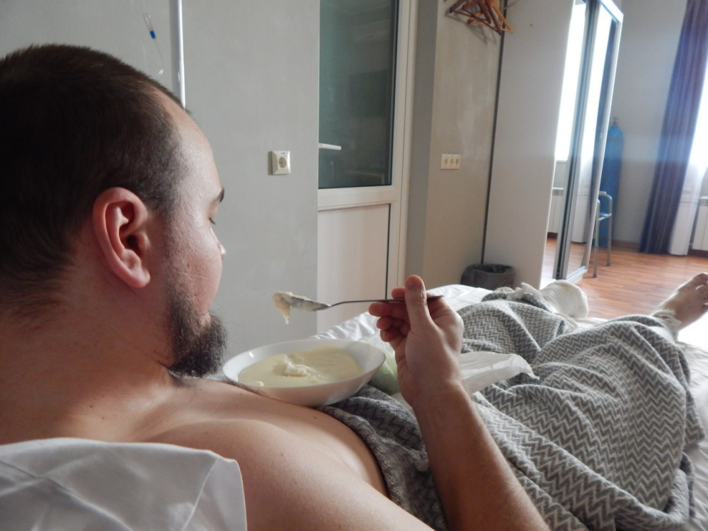 А как началась в 14 году война, он бросил московские халтуры и пошел воевать. Ноги у Андрея закованы в хитроумные железяки. Наступил на мину. Побратимы вытащили. Наложили турникеты. А там уже медики завезли в Покровск. Потом в Днепр. Там перевязки делали. - А чего выбрали не военный госпиталь? — спрашиваю я. - Там все на конвейере, — отвечает Андрей. — Все бегом. Там лежишь и достучаться, докричаться невозможно. Профи там есть, вопросов нет. Есть хирурги, которые крутятся, оперируют, но если хочешь в будущем ходить на своих двоих, нужно искать тех, кто может дать более компетентную помощь. Там, говорит Андрей, уже дали профессиональную медицинскую помощь. На левой ноге были перебиты две артерии. - Их зашили. Но кости сложили неправильно. Хаосом. Небрежно продолжает он. - Вот вам и ответ на ваш вопрос. Они не смогут физически уделить внимание каждому из бойцов. А тут хорошо. Есть кнопка вызова. Нажимаешь и сестрички приходят сразу. Ну и тут веселее немного. Командование сняло номер в гостинице, там дочка, родственники приехали погостить. Я сам с Винниччины. Коротко. Четко. Говорит, как сдает рапорт. У Коли нет ноги. Тоже мина. Вытягивал раненых побратимов, взрыв. Оторвало ногу. Посекло руку. Он коренастый, очень живой парень с румянцем на лице. Тоже с Винниччины. Тоже пошел воевать еще в 2016-ом. Сейчас готов снова идти сражаться. - Оператором дрона можно. Пальцы работают. Коля попал в частную больницу с приключениями. - Сперва привезли в военный госпиталь и сказали: день лежишь, а потом переведем тебя в частную больницу. Потом день не отправляют. Два не отправляют. Я уже отказ написал от услуг госпиталя. И жена написала. Потом стали капать (вот тут показывает на бок) покраснение пошло. Потом стали подходить врачи и говорить, чтобы я остался. Я в вас не сомневаюсь, — говорит Николай, — но тут я быть не хочу. Один из врачей вел себя ну очень грубо. На жену повышал голос. Кричал, — делится военный. — Она вышла и успокоительные таблетки принимала. - Это мой выбор, — настаивал он. - Я имею право на выбор! - Нецелесообразно, — отвечали медики в госпитале. — Хотите, забирайте бумаги и поезжайте. Но мы вам напишем: «самовольное оставление». - А они не успевают всем оказать помощь, — продолжает Николай. — Так раскиньте по больницам. Наши ребята этого стоят! - Приезжал хирург из военного госпиталя, — добавляет Андрей, — уговаривал вернуться. Я у него спрашиваю: «Сколько у вас людей на операцию?» - Пятьдесят, — отвечал врач. - Значит, я пятьдесят первый? — продолжает его уже бывший пациент. — Когда же до меня очередь дойдет? Тот так и не ответил. Бойцы недовольны. И грубым отношением к себе и тем, что их чуть ли не дезертирами обозвали. Оттого и думают, что военный госпиталь не хочет делиться с частниками, потому как это не дает осваивать бюджетные деньги. А они у нас, как известно, ходят за пациентом, и за военным тоже. Если у медучреждения, конечно, подписан специальный договор с Национальной службой здоровья Украины (НСЗУ — кошелек Минздрава). Мы, со своей стороны, с удовольствием сделали бы репортаж из нашего военного госпиталя, а то туда можно попасть только во время рабочей поездки президента. И заодно выяснили бы, почему военные врачи так неохотно делятся пациентами. БЕСПИЛОТНИКИ, БАРАБАНЫ И ОПЕРАЦИЯ «БУСИК» Андрей и Коля разговорились. Надо сказать, что от этих раненых бойц
