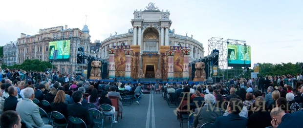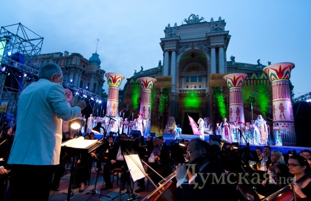 Первым летним вечером в Одессе открылся премьерой Первый международный фестиваль искусств. Фасад знаменитого Театра превратился во фрагмент декораций для «Аиды» Джузеппе Верди (реж. Карло Антонио де Лючия) и площадку для торжественного открытия праздника Высокого Искусства. В стенах Одесской Оперы до 6 июня будут выступать оперные и балетные мастера из разных стран, а 4 июня пройдет бенефис народного артиста СССР Владимира Васильева.