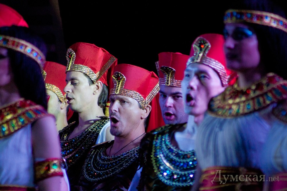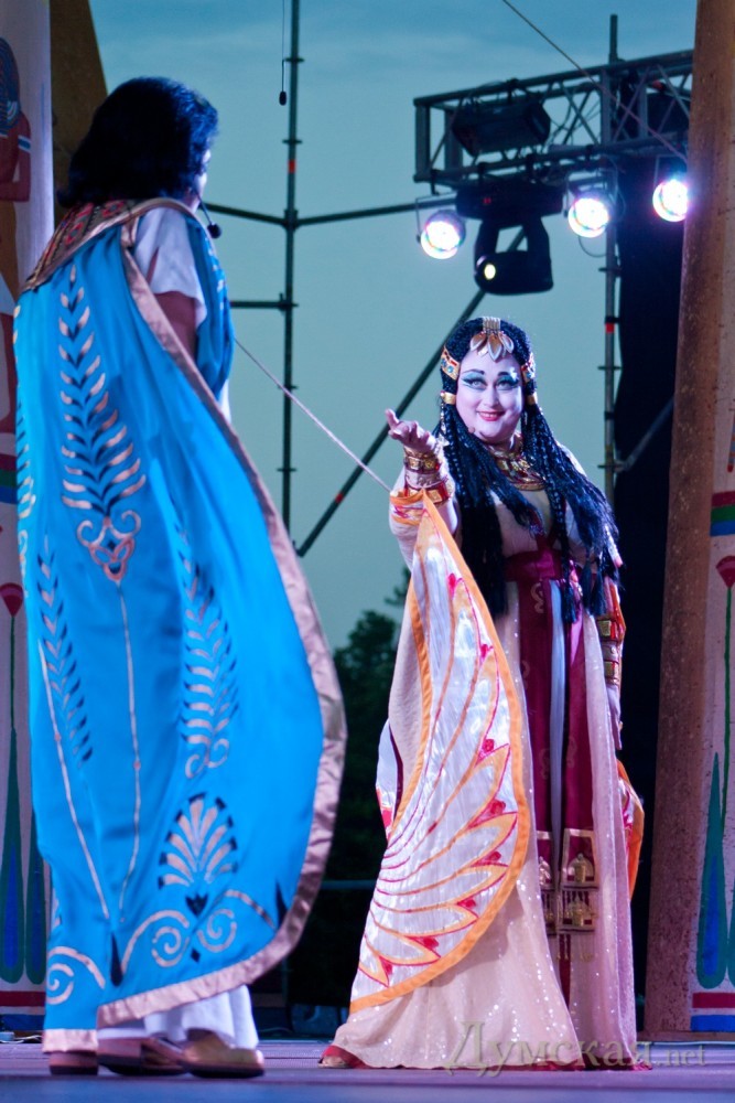 Но все это будет позже, а 1 июня произошло рождение нового Фестиваля. Безусловно, без промахов не обошлось. Организаторы, предварявшие оперу-air авансом попросили публику быть снисходительной к разного рода нестыковкам. Часть зрителей не вняли и потянулись к выходу, когда оказалось, что микрофоны не отлажены, и солистов не слышно. Остальные были вознаграждены за терпение, потому что при всех недочетах, исполнительский уровень был высок. Учитывая порывистый ветер, относивший в сторону даже усиленный техникой звук, не теплый и вовсе не ласковый вечер, исполнители-вокалисты с честью выдержали фестивальный шоу-эксперимент. Чего, увы, опять не скажешь о балетной части. Что-то, видимо, кардинальное надо делать с нашей танцевальной труппой, потому как даже не слишком стремительные и виртуозные па 8-10 человек национального театра категорически не в силах исполнить синхронно! Но зато они были красивы. Стоит отметить, что красивы были все задействованные в постановке артисты. За это огромная благодарность итальянской художнице Алессандре Полимено, создавшей артистам великолепные костюмы, а спектаклю — потрясающие декорации. Как сказала на открытии директор театра Надежда Бабич, к сентябрю декорации будут адаптированы под условия зала, а спектакль войдет в репертуар театра. Пока же их уже хотят взять в аренду некоторые зарубежные театры. Перед открытием соорганизатор фестиваля, продюсер, директор PraBesTime Productions Berlin Алексей Бессмертный заявил, что уровнем подготовки Одессы к фестивалю в целом доволен. Теперь дело за зрителем, чей отклик покажет стоит ли здесь вообще развивать высокое искусство. «Бытует мнение, что спроса на великое искусство уже давно нет на пост-советском пространстве. У меня болит душа за свой родной город, страну. Я уже 20 лет здесь не живу, и там не последний человек. Но все-таки зов корней дает о себе знать», – признался Бессмертный. В спектакле-открытии принимали участие выпускники Одесской консерватории Владимир Браун (Израиль), исполнивший партию Амонасро, и Татьяна Чубученко (Турция) в роли Амнерис. Аиду исполняла народная артистка Украины — солистка Киевской национальной оперы Татьяна Анисимова, Радамеса – заслуженный артист Украины Валерий Бендеров. Дирижер – народный артист Молдовы Александру Самоилэ. Завершится фестиваль гала-концертом «Одесские звезды мировой оперной сцены» 6-го июня.