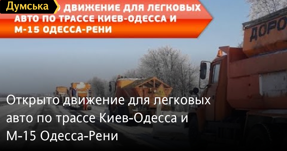 Киевскую трассу открыли для легковых автомобилей. Впрочем, в патрульной полиции предостерегают, что движение усложнено погодными условиями. В Автодоре предупредили, что местами на магистрали — большие заторы. Пустили легковые авто и трассой М-15 Одесса-Рени. А вот М-16 Одесса-Кучурган, как и раньше частично перекрыта.