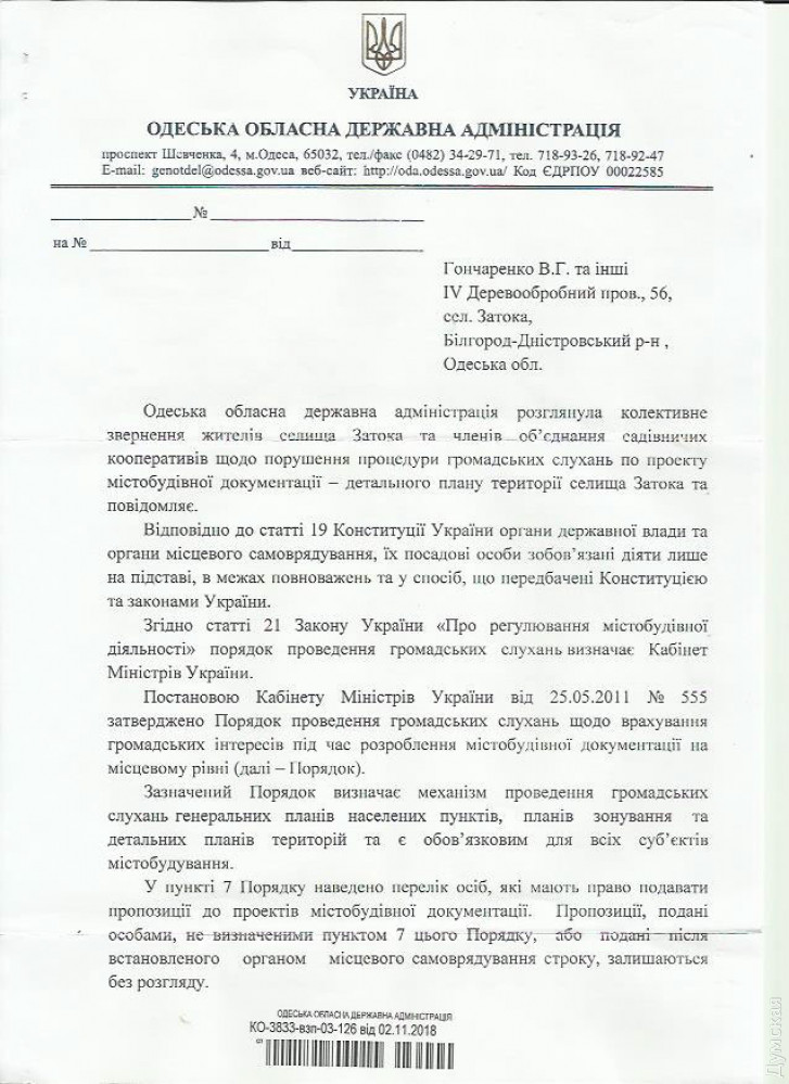 Жители Затоки неоднократно жаловались губернатору Степанову на застройку пляжей, но получали лишь отпискиАктивисты Затоки, которые выступают против уничтожения уникальных пляжей курорта, связывают создавшуюся ситуацию в поселке с бездействием областных властей. Люди неоднократно обращались с жалобами в соответствующие управления Одесской областной администрации, а также губернатору Максиму Степанову, однако каждый раз получали лишь отписки. Застраивать пляжи Затоки начали еще в ноябре прошлого года. Все попытки остановить строительство, которое ведется буквально в 20 метрах от воды, не увенчались успехом. В итоге ушлые предприниматели продолжают захватывать участки общественных пляжей, а один из них сегодня ночью залили бетоном. СМЕРТЬ РОСІЙСЬКИМ ОКУПАНТАМ! Помітили помилку? Виділяйте слова з помилкою та натискайте control-enter