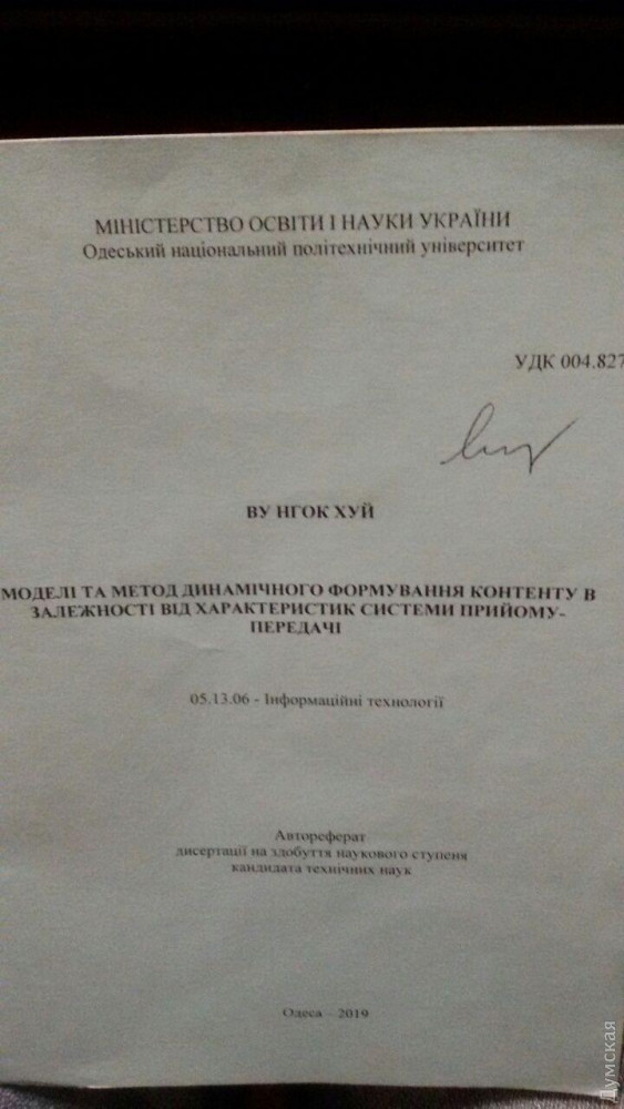 Ну что? Человек с необычным для нас именем защитил кандидатскую диссертацию. Его можно поздравить. Что из этого следует? Возможно, он продолжит научную работу в одесском политехе или вернется во Вьетнам применять на практике модели и методы динамичного формирования контента в зависимости от характеристик системы приема-передачи.