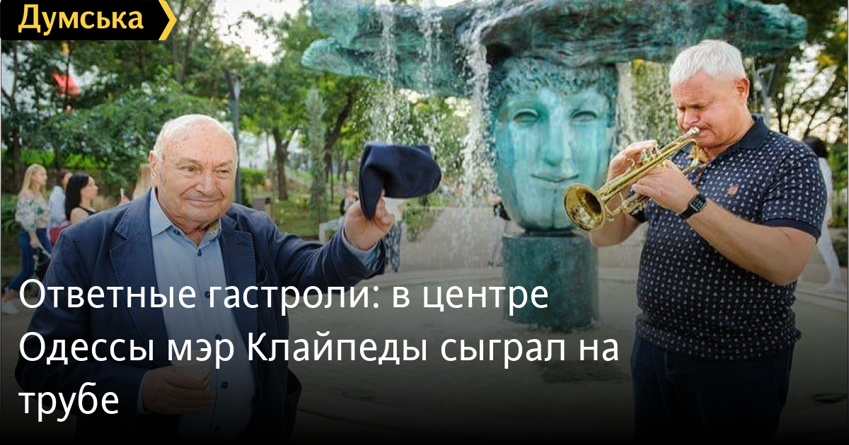 Импровизированный концерт устроил мэр литовского города Клайпеда Витаутас Грубляускас в Греческом парке. Политик сыграл на трубе под аплодисменты организаторов OdessaJazzFest и одесского литератора Михаила Жванецкого. Видео опубликовала на своей странице в Фейсбуке жена мэра Клайпеды Инга Грубляускене. Отмечается, что мэр Витаутас Грубляускас прибыл в Одессу вместе с джазовым коллективом из Клайпеды, который будет выступать на открытии OdessaJazzFest. К слову, до своей политической карьеры Грубляускас был профессиональным музыкантом. Напомним, в июле этого года мэр Одессы Геннадий Труханов музицировал на сцене города Клайпеды в рамках концерта SeeFestival. СМЕРТЬ РОССИЙСКИМ ОККУПАНТАМ! Заметили ошибку? Выделяйте слова с ошибкой и нажимайте control-enter |