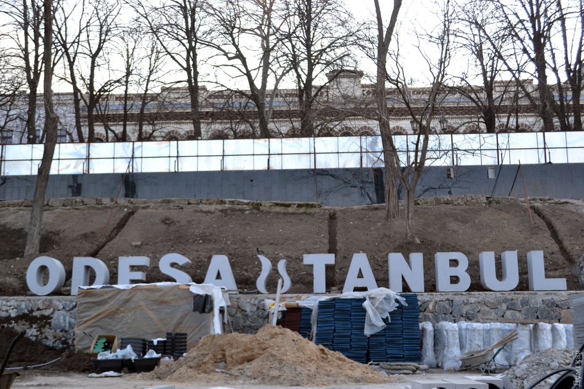 Кстати, люди, которые ведут там работы, зачем-то усиленно пытаются изображать из себя турок (официально парк благоустраивает на деньги города Стамбула компания Ask Peyzaj Medikal Sanayi ve Ticaret Limited Şirke). Они делают вид, что не понимают ни русского, ни украинского языков. Смотрите также, как парк выглядит с высоты птичьего полета. Но наш корреспондент проявил настойчивость и выяснил, что это наши земляки, жители области, отлично владеющие «великим и могучим», особенно его матерным вариантом. А «турецкий» язык, которым они потчуют любопытных горожан, — это родственный ему гагаузский. Фото — Андрей Колисниченко