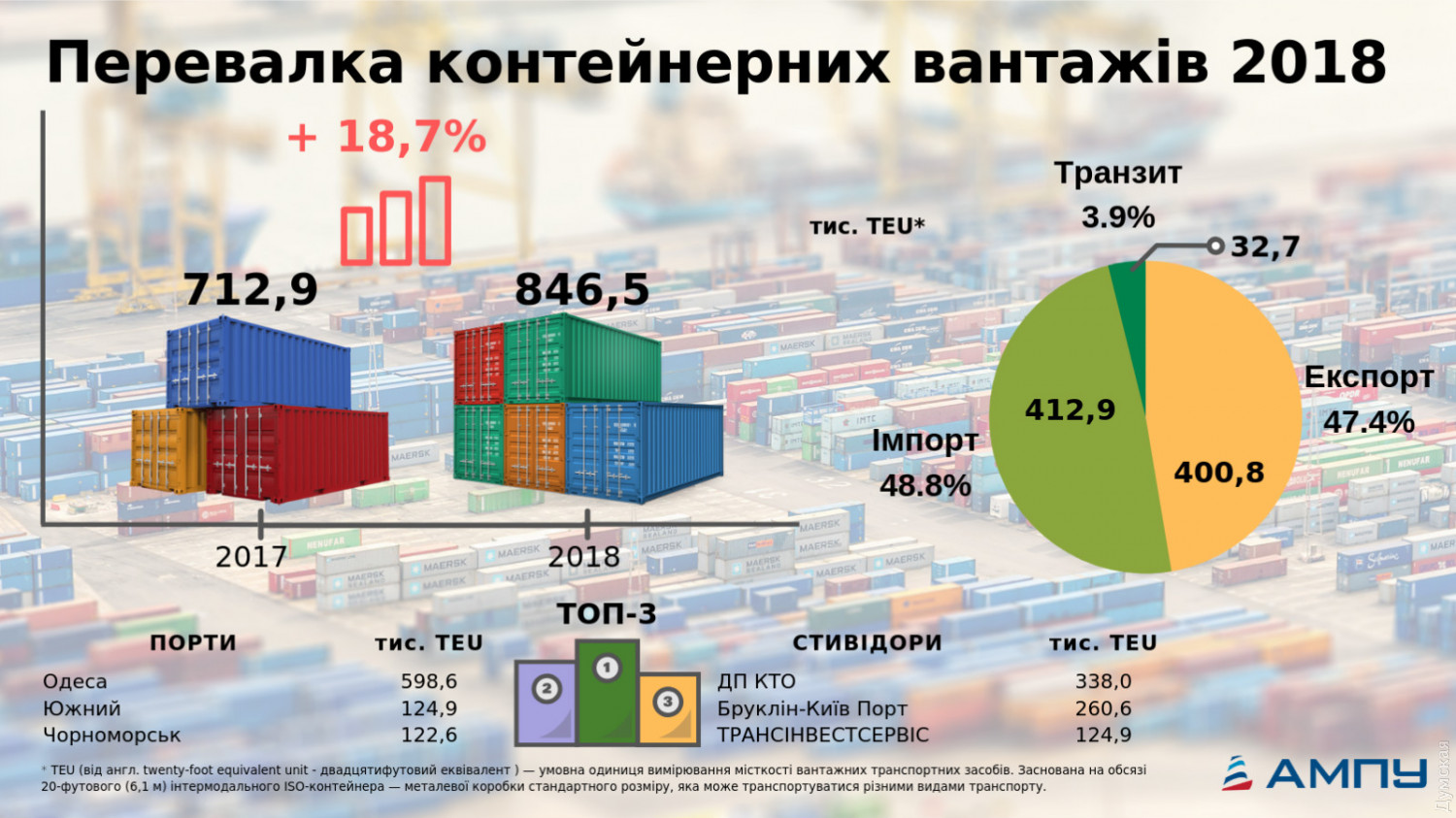Оживление экономики: рост перевалки контейнеров в украинских портах в четыре раза превышает мировую динамикуПо итогам 2018 года морские порты Украины перевалили 846,5 тыс. TEU контейнерных грузов. Это на 18,7% больше, чем в прошлом году, сообщили в Администрации морпортов, и более чем в четыре раза превышает мировую динамику. По данным Конференции ООН по торговле и развитию (UNCTAD), мировой рынок контейнеров до 2023 г. будет расти в среднем на 3,8% в год. Значительная позитивная динамика в морских портах Украины является следствием восстановления грузооборота после значительного падения в 2014-2015 гг. «Рост контейнерных перевозок свидетельствует об оживлении экономики, — считает руководитель Администрации морских портов Украины Райвис Вецкаганс. — Украинские порты еще не вышли на докризисный уровень по этому направлению, потому нам есть еще куда расти. Об этом свидетельствуют также и планы бизнеса по реализации совместно с АМПУ проектов по развитию контейнерных терминалов в тылу наших причалов. В 2018 году были достигнуты соответствующие договоренности сразу с двумя ведущими мировыми компаниями — Дочерним предприятием немецкой компании HHLA «Контейнерный терминал Одесса» (ДП «КТО») и СМА CGM совместно с ООО «Бруклин-Киев Порт» по проектам в порту Одесса». В 2018 г. экспорт и импорт контейнеров через украинские морские порты распределился почти поровну — 47,4% и 48,8% соответственно. Контейнерами за пределы страны экспортируются такие товары, как зерно, фрукты, пищевые грузы, а также металлопродукция, строительные материалы. Импортируются преимущественно оборудование, текстиль, пищевые грузы, алкоголь, пластик/ПВХ. Лидерами по перевалке контейнеров стали порты Одесса, Южный и Черноморск. Южный в 2018 году увеличил перевалку этих грузов на более чем 75% за счет перехода в порт международной контейнерной линии Maersk из Одессы. Однако, невзирая на это, Одессе удалось не только сохранить объемы контейнерных грузов, но и увеличить их на 15%. Среди стивидорных компаний лидерами по обработке контейнеров стали ДП «КТО», ООО «Бруклин-Киев Порт», ТИС и Черноморский рыбный порт. СМЕРТЬ РОСІЙСЬКИМ ОКУПАНТАМ! Помітили помилку? Виділяйте слова з помилкою та натискайте control-enter Новини по цій темі: 14 грудня 2023: В Одеській області через загрозу ракетно-дронових ударів зупинили будівництво сучасного млина 18 листопада 2023: В Україні знайшли нові поклади природного газу: розвідувальна свердловина дала рекордний результат 28 жовтня 2023: Війні всупереч: в Одеській області за підтримки держави побудували завод із переробки фундука 23 жовтня 2023: Від шкарпеток до мінометів, від тушонки до ракет: на які виклики доведеться відповідати новому керівництву Міністерства оборони? |