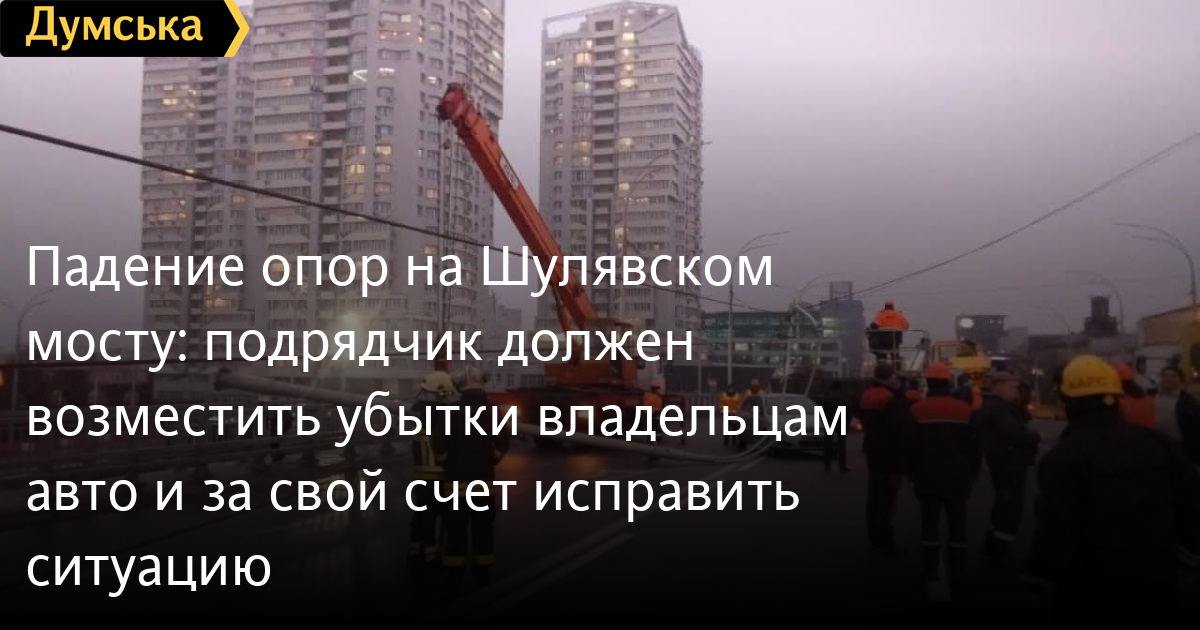 Падение опор на Шулявском мосту: подрядчик должен возместить убытки владельцам авто и за свой счет исправить ситуациюМэр Киева Виталий Кличко заявил, что опоры освещения, которые вчера упали на Шулявском мосту, генподрядчик будет менять за свой счет. Об этом Кличко написал на своей странице в Фейсбук. «Вчерашний инцидент на Шулявском мосту возмутил киевлян. И я также возмущен тем, что на путепроводе, открытом год назад, упали три опоры освещения. На новый мост подрядчик дал гарантию 50 лет!», — отметил Кличко. Он добавил, что специалисты обследовали все опоры освещения. Те, что вызвали сомнения в надежности укрепления — демонтированы. Ночью подрядчик осуществил демонтаж шести опор и оперативно установит столбы с усилением несущей конструкции. «Подчеркиваю: генподрядчик, который давал гарантию на эксплуатацию объекта, осуществит все работы за свой счет. Также «Дирекция строительства дорожно-транспортных сооружений», как заказчик строительства, обратится в суд по возмещению подрядчиком убытков за поврежденные автомобили киевлян», — подчеркнул мэр столицы. По его словам, прокуратура столицы уже открыла уголовное производство по статье «Нарушение правил, которые касаются безопасного использования промышленной продукции или безопасной эксплуатации зданий и сооружений». «И мы рассчитываем, что расследование будет оперативным и прозрачным, чтобы все виновные понесли ответственность. Я в этом, как мэр столицы, который открывал мост, заинтересован больше всего! Потому что понимаю, что это - моя репутация», — резюмировал Кличко. СМЕРТЬ РОССИЙСКИМ ОККУПАНТАМ! Заметили ошибку? Выделяйте слова с ошибкой и нажимайте control-enter |