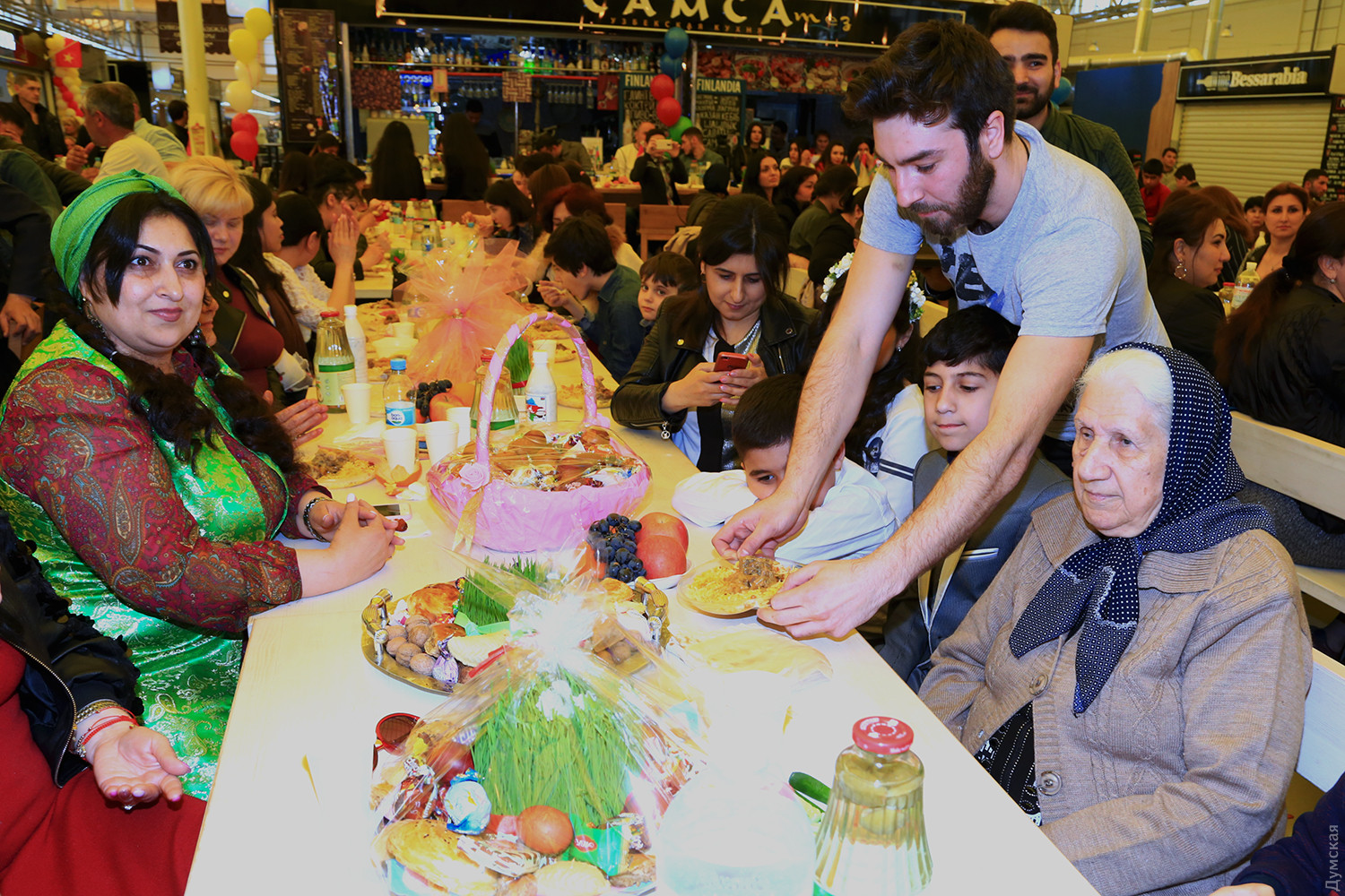 Азербайджанцы и ряд других тюрко- и ираноязычных общин Одессы отмечают в эти дни древнеперсидский праздник прихода весны — Новруз. Корреспондент «Думской» побывал на торжествах. Новруз — праздник нерелигиозный (когда-то был таковым), поэтому проходит весело и без условностей, хотя, конечно, харам недопустим. Столы ломились от традиционных яств, было много песен и танцев. Разошлись только под вечер. В эти дни принято не только веселиться, но и посещать кладбища. Люди приносят на могилы родных свечи, поминая предков, поэтому у азербайджанцев второй день Новруза называется Родительским. Главным блюдом праздника (у все тех же азербайджанцев, у других народов свои кушанья) является пахлава – восточная сладость из слоеного теста с орехами, изюмом и приправами. На горячее обязательно подают знаменитый азербайджанский плов. Он отличается от среднеазиатского, к которому привыкли мы, тем, что содержит сладкие компоненты – изюм и сухофрукты, — а также тем, что рис и зирвак готовят отдельно. И подают его, не перемешивая — сначала рис, а сверху мясо с сухофруктами, луком и морковью. Ну и конечно, в этот праздник обязательно надо поглощать в больших количествах шашлык или кебаб из баранины. Азербайджанцев в Одессе — больше 30 тысяч, люди этой национальности проживают тут с самого основания нашего общего города. С праздником, друзья! Фото Сергея Смоленцева СМЕРТЬ РОСІЙСЬКИМ ОКУПАНТАМ! Помітили помилку? Виділяйте слова з помилкою та натискайте control-enter |