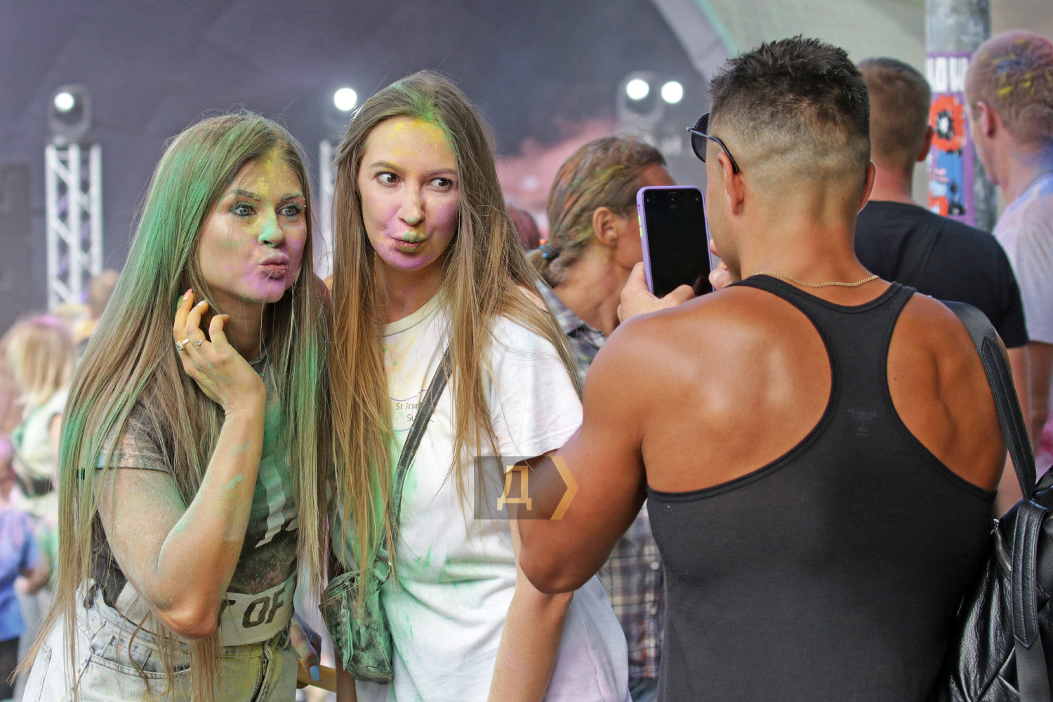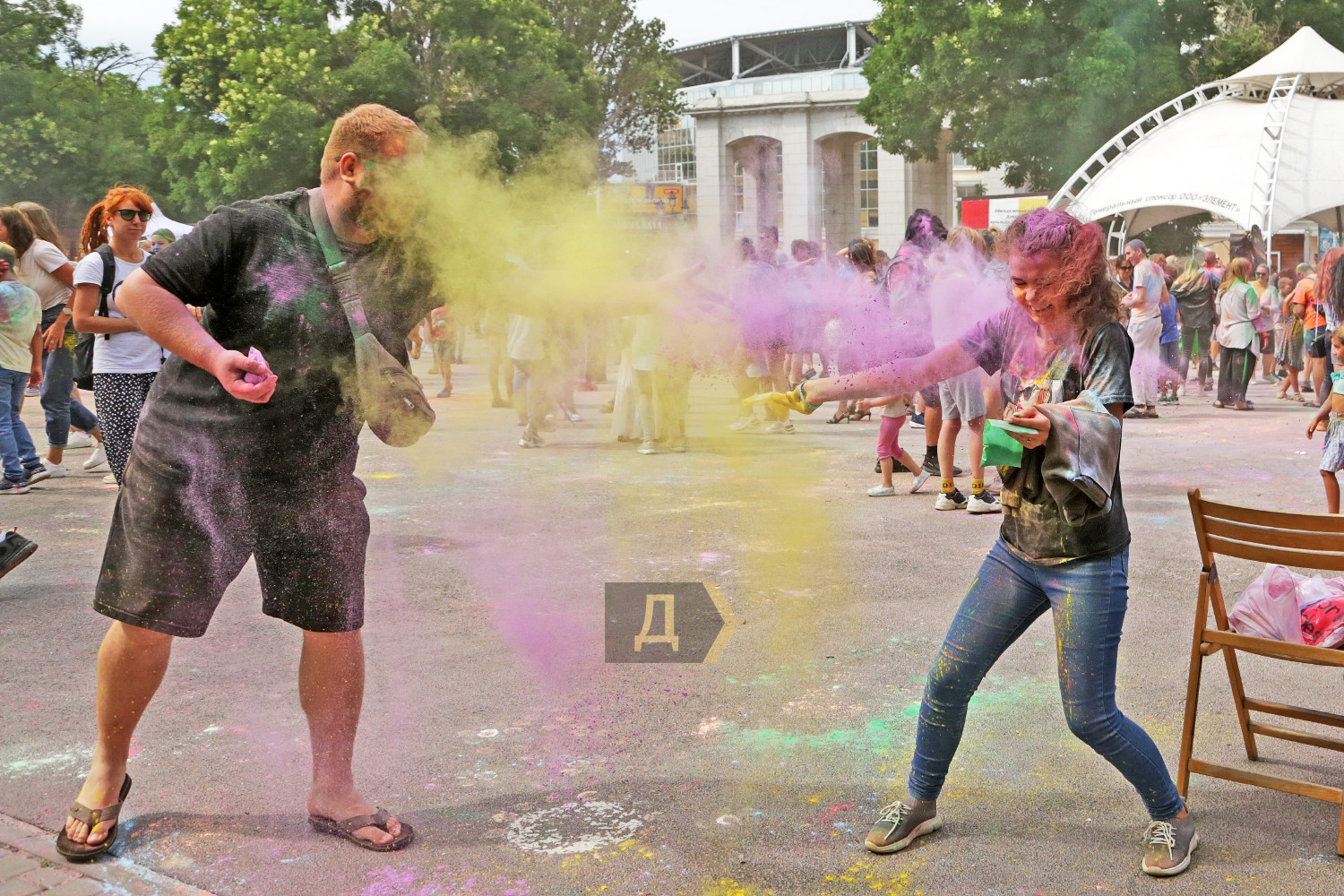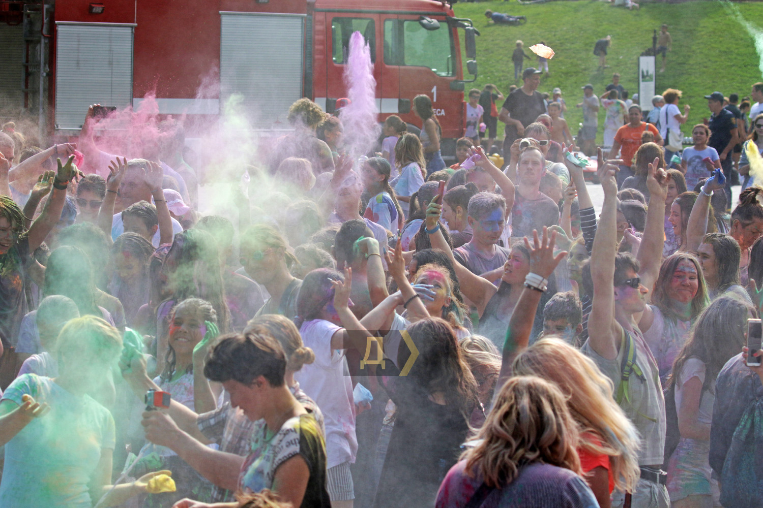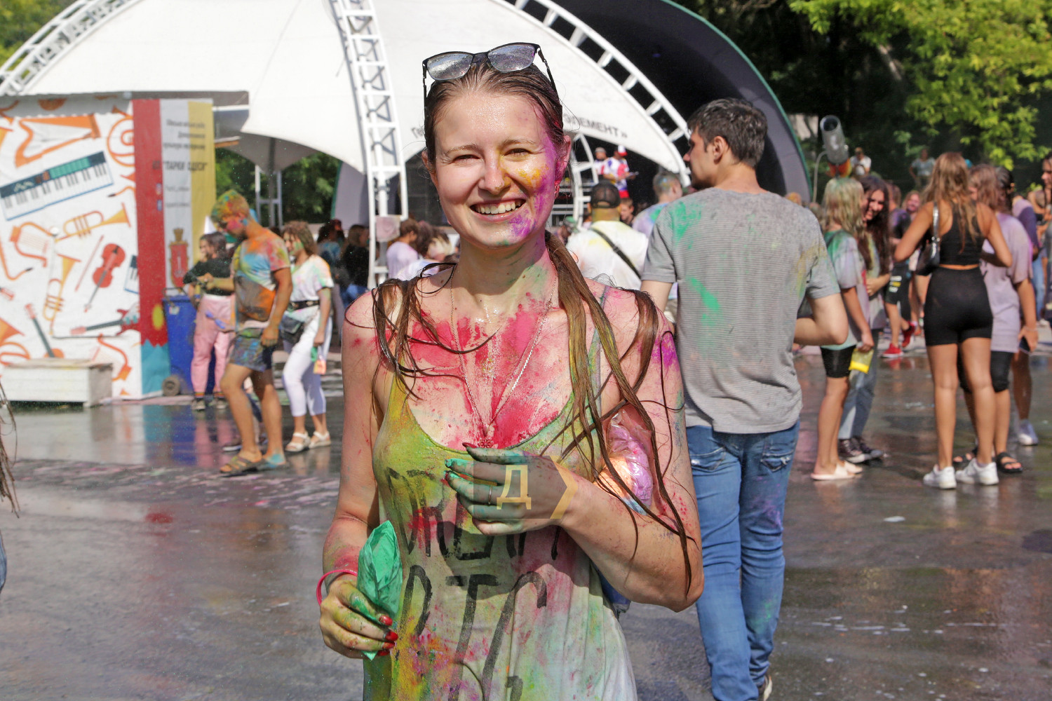 Праздник Холи проходил возле «ракушки», неподалеку от стадиона. Осыпание друг друга цветными порошками сменялось порцией моющего средства из широкого сопла пеномашины, после чего все желающие могли совершить омовение из брандспойта пожарной команды.