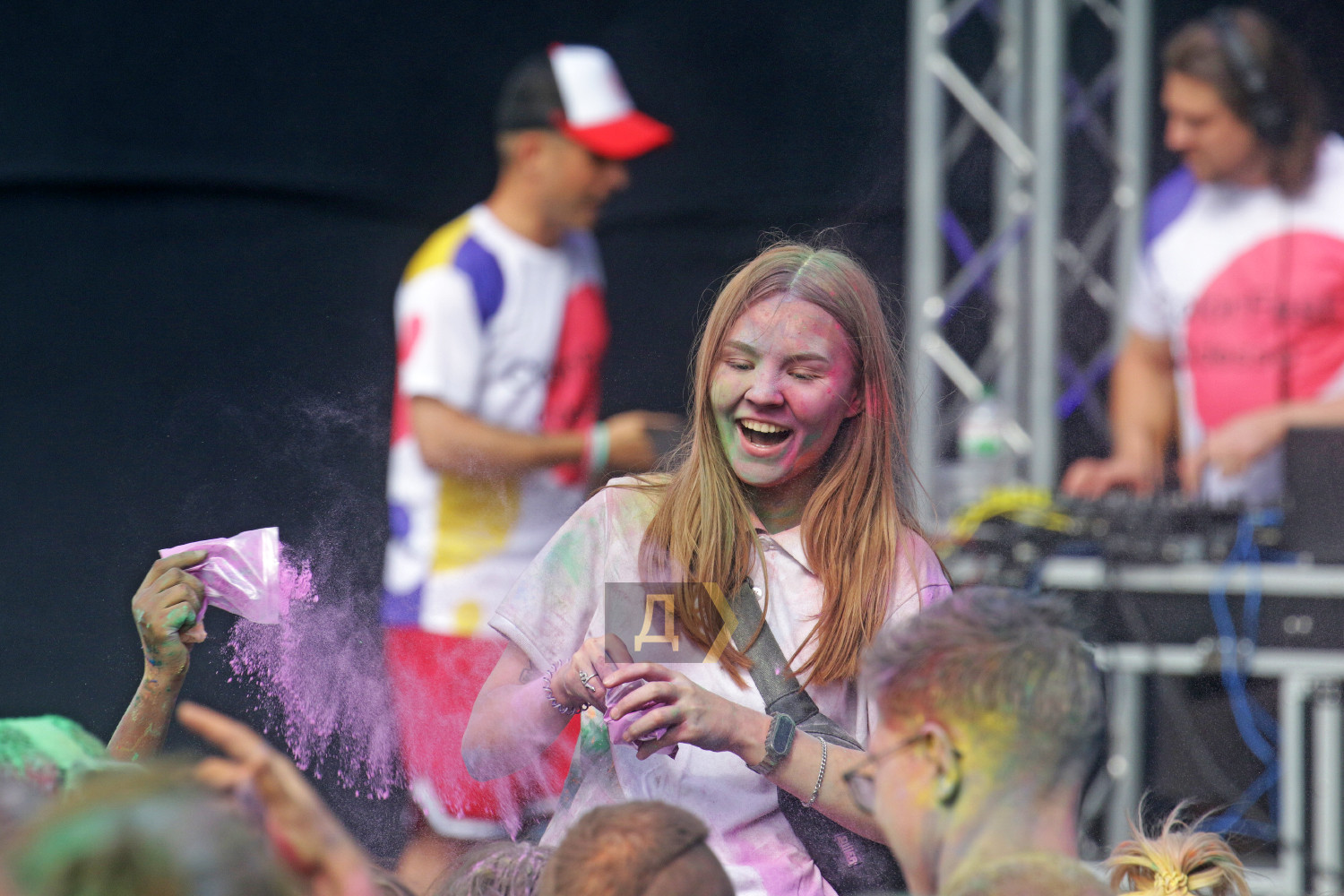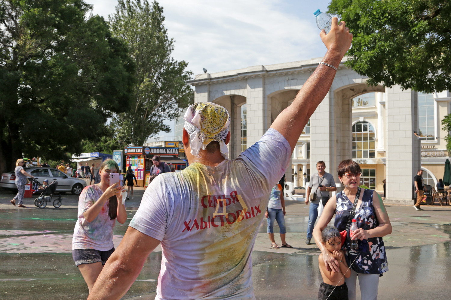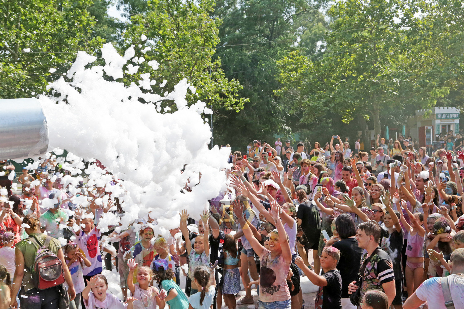 Праздник Холи проходил возле «ракушки», неподалеку от стадиона. Осыпание друг друга цветными порошками сменялось порцией моющего средства из широкого сопла пеномашины, после чего все желающие могли совершить омовение из брандспойта пожарной команды.
