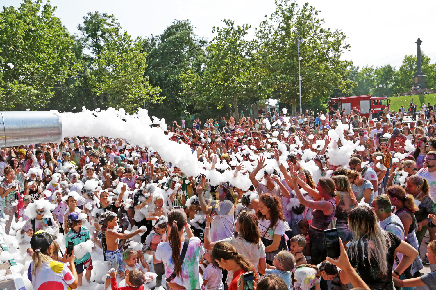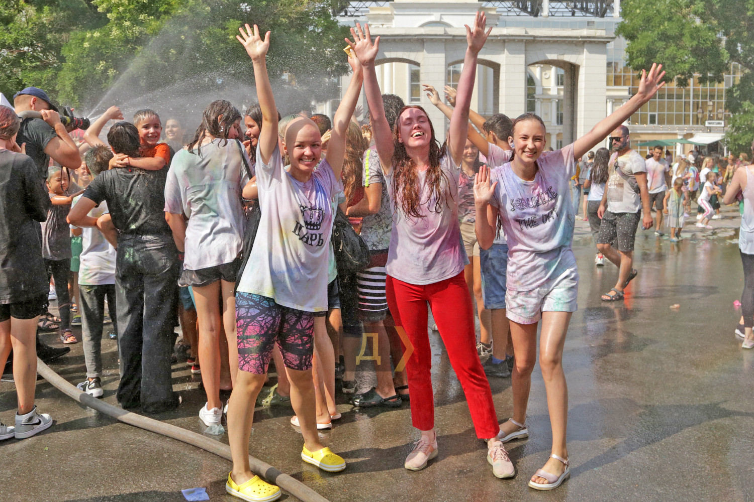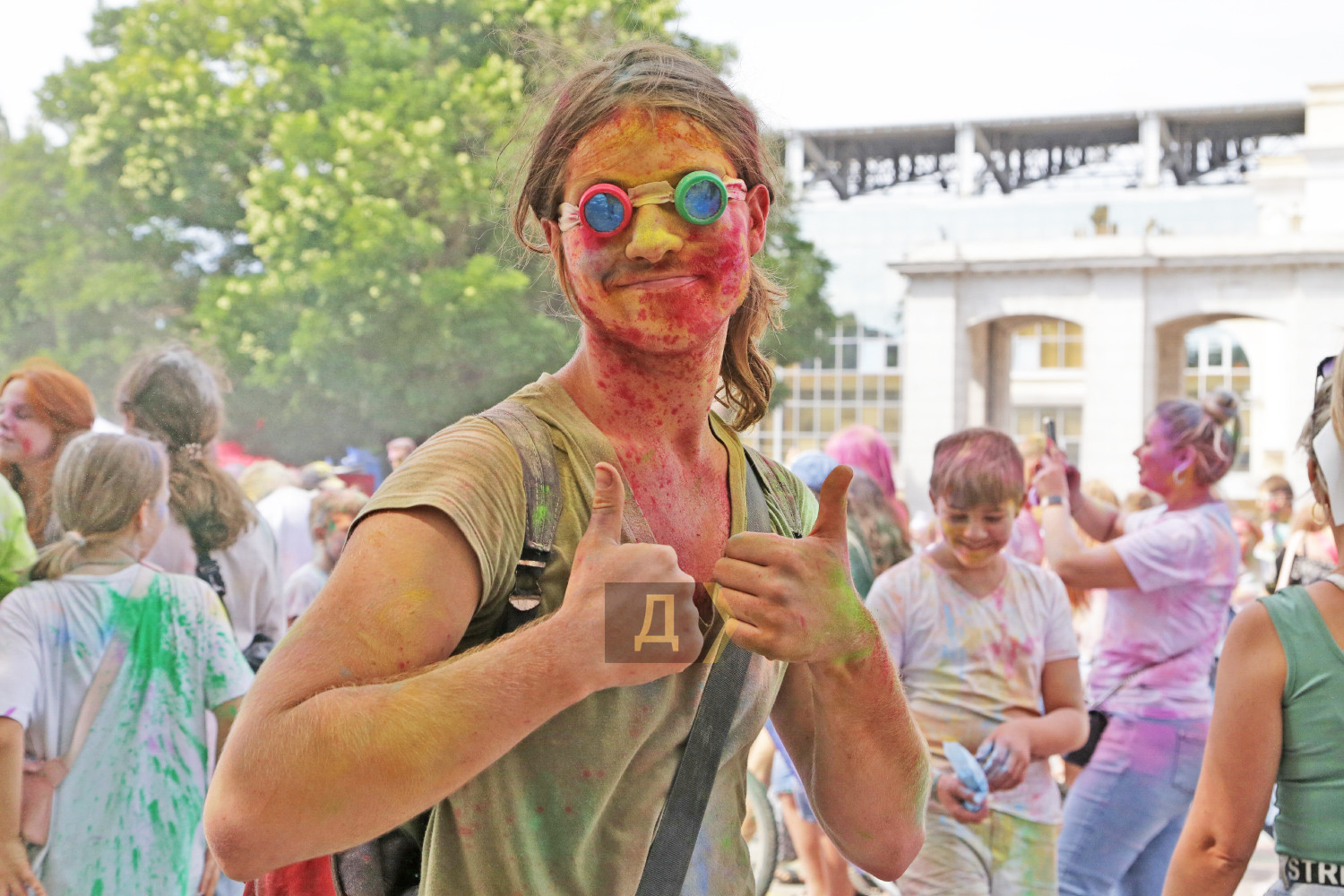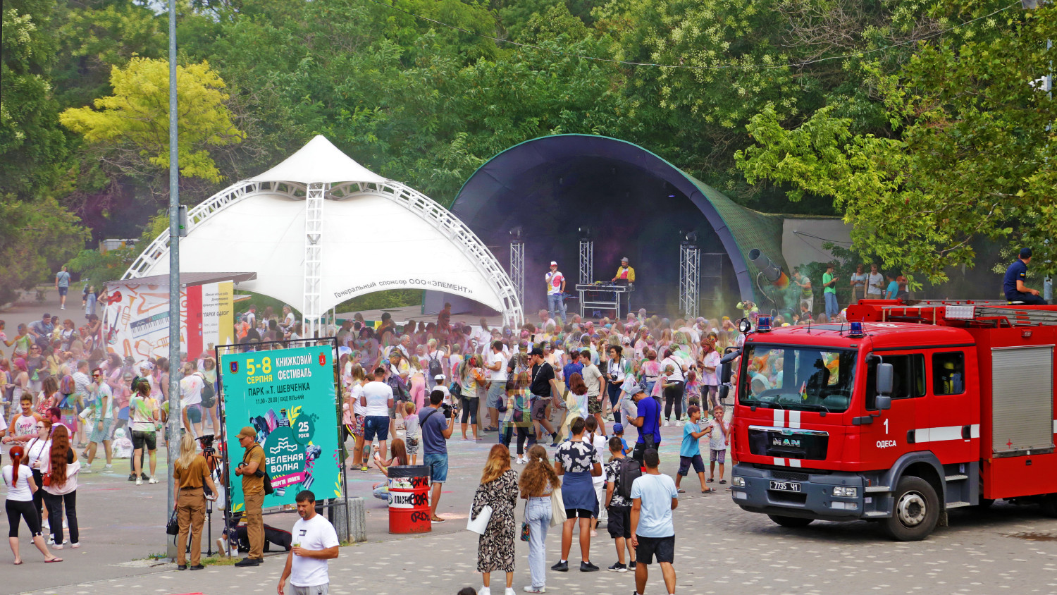 Праздник Холи проходил возле «ракушки», неподалеку от стадиона. Осыпание друг друга цветными порошками сменялось порцией моющего средства из широкого сопла пеномашины, после чего все желающие могли совершить омовение из брандспойта пожарной команды.