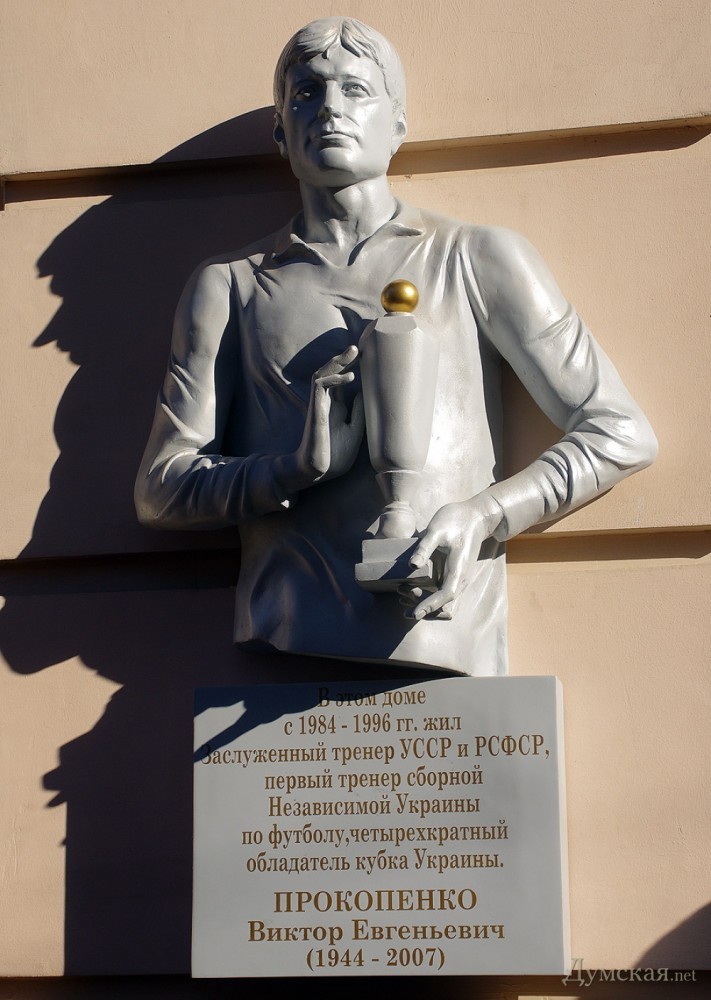 Сегодня на фасаде дома №21 по Ришельевской улице торжественно открыли мемориальную доску, посвященную футбольному тренеру Виктору Прокопенко. На церемонии, кроме представителей городских и областных властей, присутствовали футболисты «Шахтера» и «Черноморца», игравшие под руководством Прокопенко, а также его родные и близкие. Таким образом, мероприятие больше походило на встречу старых знакомых. «Футбол — это общая страсть, это то, что объединяет людей. Сегодня таких вещей у нас в стране крайне мало. Ну а Виктор Прокопенко приносил Одессе победы, и мы должны хранить память о нем», — сказал присутствующий на открытии глава Одесского областного совета Алексей Гончаренко. Напомним, Виктор Прокопенко в свое время возглавлял одесский «Черноморец», донецкий «Шахтер», волгоградский «Ротор», московское «Динамо» и национальную сборную Украины. Ушел из жизни 18 августа 2007 года. СМЕРТЬ РОСІЙСЬКИМ ОКУПАНТАМ! Помітили помилку? Виділяйте слова з помилкою та натискайте control-enter |