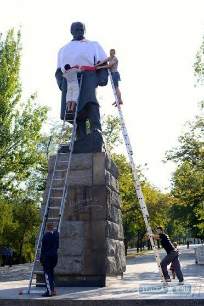 Члены общественного совета при Одесской облгосадминистрации надели на памятник Тарасу Шевченко, установленному в одноименном парке, белую рубашку с флагом Одессы. Авторы идеи назвали акцию «посвящением Шевченко в одесситы». «Сегодня нашему любимому городу исполнилось 220 лет. Он всего лишь на 20 лет старше известного и всеми любимого писателя…Таким поступком мы хотим выразить, что Одесса — за мир и за единую Украину, ведь Одесса и одесситы известны всему миру», — сказала председатель совета Тамила Афанасьева. СМЕРТЬ РОСІЙСЬКИМ ОКУПАНТАМ! Помітили помилку? Виділяйте слова з помилкою та натискайте control-enter |