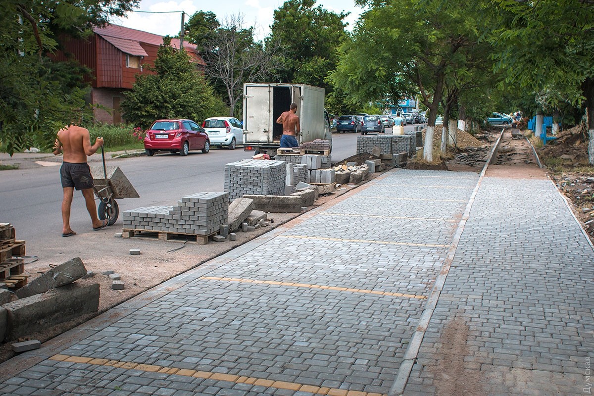 На 13-й Фонтана кромсают и без того узенькую пешеходную зону. В частности, там уничтожают клумбы. Их застилают плиткой, превращая в парковочные места для будущей гостиницы и существующего ресторана, передает корреспондент «Думской».