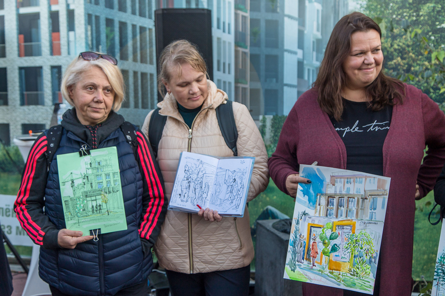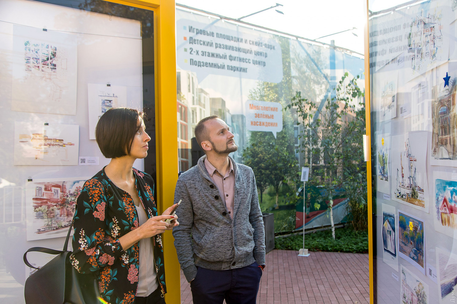 Urban sketching в «Пространстве» Донского: искусство вышло на улицу (новости компаний)На прошлой неделе в Одессе по адресу: Дмитрия Донского, 59 открылась необычная экспозиция зарисовок городской жизни. Получив приглашение на эту выставку, сначала задумались: где же там может быть галерея? На карте по указанному в анонсе адресу не обнаружилось ничего похожего на выставочный зал. Похоже, репортаж об открытии придется начать с журналистского расследования, подумали мы. Но оказалось, что галерея располагается прямо на улице, перед готовящимся к сдаче жилым домом. Три стенда демонстрируют десятки эскизов в самых разных техниках: акварель, графика, пастель; рядом с работами, согласно веяниям цифровой эпохи – ссылки на фейсбук-страницы авторов. Сюжеты, условно объединенные темой городского пейзажа, тоже весьма разнообразны: узнаваемый с первого взгляда силуэт Пассажа соседствует с изображением одесского дворика, украшенного гирляндами бельевых веревок, рядом со стрелами портовых кранов – набитый скарбом поколений старенький комод. «Urbansketching – популярное направление современного искусства, возникшее 12 лет назад в интернет-сообществе Flickr, – объясняет куратор выставки Мария Апрятова. – Оно изображает городскую жизнь в динамике, не с фасадной, а с «изнаночной» стороны». Эскиз, или по-английски «скетч», используют художники, архитекторы, инженеры, и даже журналисты – как, например, основатель движения скетчеров Габриэль Кампанарио, иллюстрировавший набросками свои статьи. Скетч стирает границы, проникая в повседневную жизнь зрителя, позволяет ему окунуться в современное искусство, понятное без дополнительных объяснений. Однако Мария Апрятова советует не обманываться кажущейся легкостью жанра: многие из составивших выставку работ могли бы украсить экспозицию любого музея. Впрочем, профессиональное владение техникой рисунка здесь необязательно, ведь один из принципов скетчинга – уважать индивидуальный стиль каждого. Среди 14 художников, чьи эскизы представлены в уличной галерее «Такой необычный формат открытого экспозиционного пространства идеально подходит для urbansketching, – говорит Мария. – Здесь много света и нет стерильной белизны галерейных стен. Сегодня искусство вышло за пределы традиционных выставочных центров и пришло к людям». Подходит время официального начала мероприятия. Слово берет Ирина Шаутидзе, руководитель отдела продаж комплекса «Пространство на Донского», где расположилась экспозиция. Сегодняшнее событие – не просто открытие выставки, а воплощение исповедуемого «Пространством» партисипативного принципа, уверена она. «Партисипация» – термин из лексикона вошедшего в моду движения нового урбанизма. Попросту он означает «участие», в данном случае – участие жителей в проектировании городской среды. Новые урбанисты отказались от попыток изобрести один универсальный проект места для жизни – они предлагают спросить тех, для кого оно предназначено, об их потребностях. Сейчас будущих жителей «Пространства на Донского» просят оценить первые три арт-объекта (всего их будет 25) и выбрать, чьи работы они хотят видеть у себя дома. Вокруг установлены QR-коды – это ссылки на вопросы, за ответы на которые участникам дают возможность поставить «лайк» понравившейся работе. Сканируем один из кодов и читаем: «Оцените, 