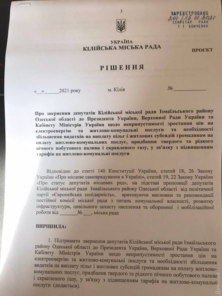 В Одесской области горсовет поддержал проект «Европейской Солидарности» и обратился к правительству по поводу роста тарифов и проблемы субсидий (политика)Раздельнянский городской совет Одесской области поддержал инициативу фракции «Европейской Солидарности» и обратился в парламент и Кабмин с просьбой разобраться с ростом коммунальных тарифов, а также увеличить расходы на выплату льгот и жилищных субсидий. Такое решение муниципальное собрание приняло сегодня. «Надеемся, что нас в Киеве услышат, — заявила руководитель фракции ЕС в горсовете Наталья Буковская. — Люди должны иметь возможность оплачивать коммунальные услуги, особенно малоимущие, ведь для них создана система субсидий». Аналогичные проекты «Европейская Солидарность» зарегистрировала в Раздельнянском районном и Подольском городском, а также в Одесском областном, городском и районном советах. В ближайшее время такие же документы рассмотрят и в других местных собраниях региона. Как отмечается в проекте решения, предложенного «Солидарностью», за последний год реальные доходы украинцев уменьшились, а если учесть продолжающееся падение экономики и пандемию коронавирусов, уменьшение доходов продолжится и в 2021 году. «Вместе с тем, в течение предыдущих недель были приняты решения о повышении цен на газ, тарифов на услуги распределения газа, тарифов на тепло, на электроэнергию, на холодную воду. Это создает угрозу для миллионов людей оказаться за чертой бедности. Украинцы, жители Одесской области, нуждаются в срочной защите», — говорится в проекте. По словам авторов, одним из эффективных механизмов защиты граждан от увеличения тарифов являются субсидии, которые помогают компенсировать расходы тем, у кого нет возможности платить за коммунальные услуги. Именно система субсидий сохраняет социальную справедливость и прозрачность бюджетных затрат, направляя средства на поддержку тех, кто действительно нуждается в помощи. «К сожалению, такой подход нарушен, поскольку средств в бюджете заложено мало, — констатируют в «Европейской Солидарности». — В госбюджете на 2021 год на выплату субсидий предусмотрено 36,6 млрд грн, что почти на 600 млн грн меньше, чем было в бюджете на 2020 год Это при том, что социально-экономическая ситуация в стране за последние годы не улучшилась. Следует отметить, что на 2019 год бюджетом на выплаты субсидий было предусмотрено 58,05 млрд грн. Кроме того, власть делает непонятные заявления относительно поставок электроэнергии и газа из страны-агрессора. Украина долгие годы не имела проблем с поставками электроэнергии и уже больше пяти лет не покупает газ в России. Наша энергетическая независимость от агрессивной империи является одним из главных достижений прошлого десятилетия. Любые разговоры о возврате этой газовой кабалы — это переход стратегически важной красной линии». Фракция ЕС предлагает коллегам обратиться к Верховной Раде с требованием немедленно пересмотреть тарифы для населения, а также пересмотреть Закон Украины «О Государственном бюджете Украины на 2021 год», увеличив расходы на выплату льгот и жилищных субсидий. «Средства предлагаем перераспределить из статей расходов, связанных с обеспечением Президента Украины, других высших органов государственной власти, правоохранительных органов», — добавляют депутаты. СМЕРТЬ РОС