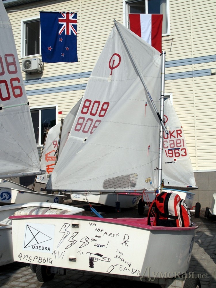 ВСЕ одесские яхты, включая 15 штук SB3 куплены выпускником Водного ин-та, ныне богатый человек, вкладывает душу и деньги в яхтинг. Сам гоняется в экипажах, содержит несколько яхтенных команд гонщиков в России и Украине. Построил это здание школы, пригласил тренеров. Был и пизером и победителем серьезных международных регат в Европе. Спешу огрчить -гос-во НИ КОПЬЯ не вложило!! В общем -учитесь -круки-продаевичи и пр.
