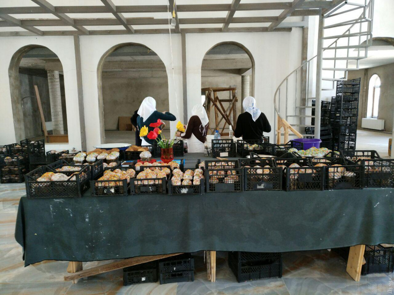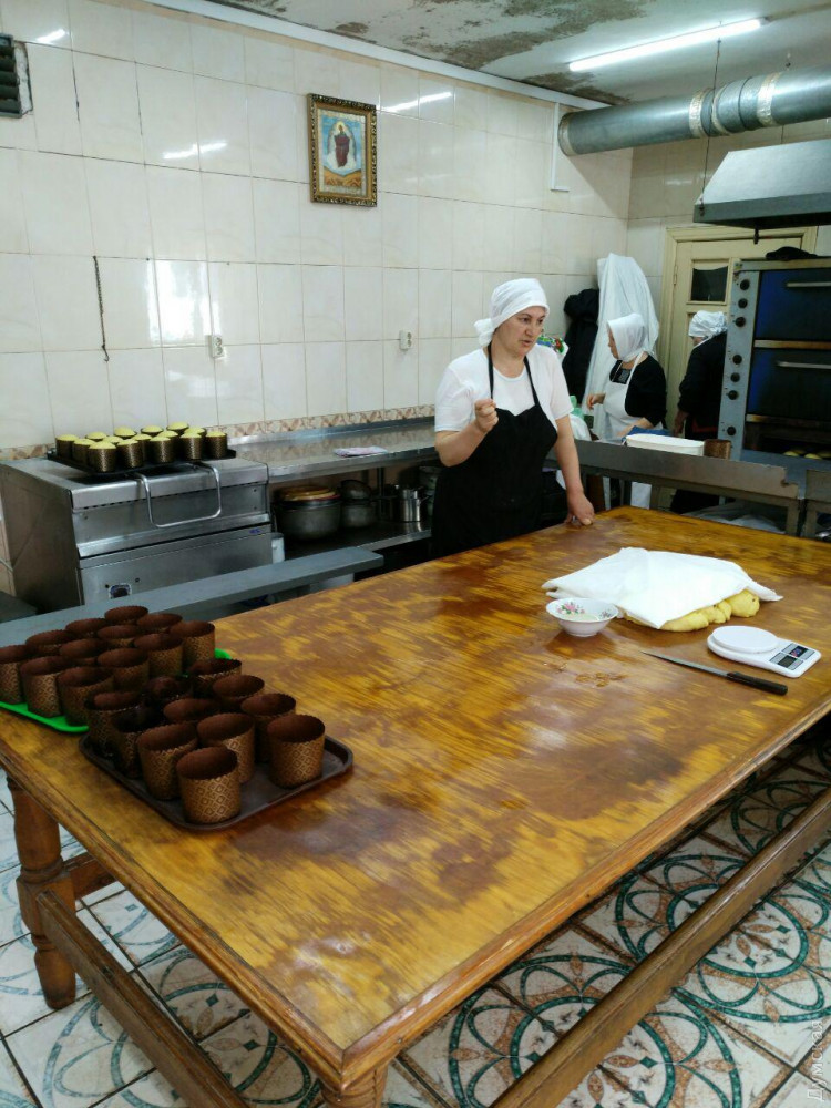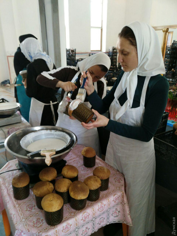 В одесском женском монастыре пекут 10 тысяч пасок для детей-сирот и заключенныхПекарня одесского женского монастыря Архангела Михаила, что на Успенской, вот уже вторую неделю работает практически круглосуточно, передает корреспондент «Думской». Там днем и ночью пекут паски. К празднику Воскресения Христова монахини планируют изготовить порядка 10 тысяч этих изделий, которые доставят в одесские тюрьмы, больницы и детские дома. О том, что в монастыре пекут куличи, становится понятно еще у ворот, где вовсю ощущается одурманивающий запах ванили и изюма. Он позволяет безошибочно найти дорогу в цех, откуда то и дело выносят ящики с нарядными, украшенными разноцветной посыпкой куличами. Работа отлажена идеально – часть монахинь замешивает тесто, часть раскладывает его в формы и ставит в печь. Остальные – красят верхушки куличей белой сахарной глазурью и посыпают разноцветными украшениями. Процесс сопровождается молитвой. Это, уверяют монахини, — главный ингредиент. На 150 куличей среднего размера уходит 10 литров молока, 60 яиц, десять лимонов, три столовые ложки ванили, полтора килограмма изюма, три литра маргарина и 24 килограмма муки. Традиция печь куличи к Пасхе существует в монастыре с момента его основания. Работа начинается за полторы недели до Пасхи – именно столько времени нужно, чтобы испечь около 10 тысяч куличей. По словам настоятельницы монастыря игумении Серафимы, готовые паски предназначены не только для прихожан, сестер и обитателей монастырского Дома милосердия. Львиная доля уезжает в Тюремный замок, психиатрическую больницу на Слободке, в детские дома, к одиноким пенсионерам, многодетным семьям и просто к обездоленным одесситам, у которых нет возможности испечь такой богатый кулич. «Мы молимся Господу о мире и благополучии, особенно тех, кто приходит к нам с пасхальной корзиной. Мы видим, что в эту корзину люди вкладывают все свои представления о домашнем добре. Кладут и пасочки, и колбасы, и крашенки, и пасхальный рушник. И батюшка это изобилие благословляет. Церковь благословляет и тех, кто постился, и тех, кто не постился. Пускай у каждого будет пасхальная корзина наполненной, благодатной, символизирующей достаток и мир», — говорит матушка Серафима. Фото Надежды Маркевич СМЕРТЬ РОССИЙСКИМ ОККУПАНТАМ! Заметили ошибку? Выделяйте слова с ошибкой и нажимайте control-enter Новости по этой теме: 16 апреля 2023: Одесситы справляют Воскресение Христово: у храмов Православной церкви Украины огромное количество верующих (фоторепортаж) 20 апреля 2022: В Украине из-за военного положения не будет дополнительных выходных на Пасху и майские 4 мая 2021: В Турции закрыли гостиницу из-за вечеринки с туристами без масок – в числе нарушителей были украинцы |