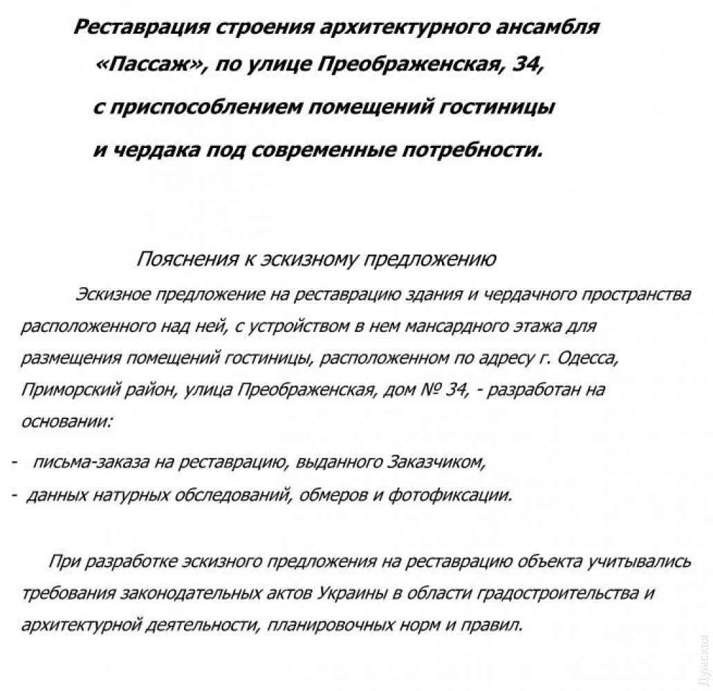 Совет по культурному наследию не стал рассматривать вопрос реконструкции «Пассажа»Консультационный совет по вопросам охраны культурного наследия Одесской области не стал рассматривать предложение о реконструкции гостинично-торгового комплекса «Пассаж», что на углу Дерибасовской и Преображенской с «приспособлением помещений гостиницы и чердака под современные потребности». Такое решение члены совета приняли на вчерашнем заседании. «Те визуализации, которые нам предоставили, абсолютно не информативны. На них полностью отсутствует лепнина и все детали, благодаря которым формируется ценность этого объекта, — пояснил член совета, архитектор Максим Васалатий. Оказалось, что предоставленные инкогнито документы никем не подписаны. Кроме того, неизвестно, какая организация выполнила это предпроектное предложение. Также был снят вопрос о строительстве мансарды на доме №6 по Гаванной. Вместе с тем совет поддержал включение части исторического ограждения из орудий XIX века на Артиллерийской улице в состав памятника архитектуры «Ограждение Сергиевского артиллерийского училища в составе комплекса Сергиевского артучилища». С некоторыми замечаниями одобрили историко-архитектурный опорный план исторической части Овидиополя с определением границ исторических ареалов и проект зон охраны памятников истории населенного пункта. Поддержал совет предпроектное предложение относительно ремонтно-реставрационных работ по реабилитации (реставрации) квартиры №10 в здании-памятнике архитектуры «Дом Брандта и Шульца, 1901-1903» на Екатерининской, 1. Собственники квартир на верхнем этаже хотят приспособить чердак под мансардный этаж и провести внутреннею перепланировку под квартиры. При этом пропорции здания будут изменены. Против выступили лишь архитекторы Анатолий Изотов и Максим Васалатий. Также члены совета поддержали предпроектное предложение относительно ремонтно-реставрационных работ по восстановлению после пожара крыши внутридворового флигеля дома-памятника архитектуры и градостроительства на Ришельевской угол Бунина. В доходном доме Баржанского 1873 года постройки чердак будет приспособлен под квартиры, а в существующих квартирах на четвертом этаже здания хотят сделать внутреннюю перепланировку. Заказчиком работ выступают собственники квартир четвертого этажа. Они же и станут владельцами чердачного помещения. Еще одну «реставрацию» в памятнике архитектуры совет не поддержал. В доходном доме Ждановой 1910 года постройки на Екатерининской площади, 8 хотят задним числом утвердить уже выполненные ремонтно-реставрационные работы в квартире №6, части квартиры №9 и на мансарде с объединением помещений в одно жилое. За построенную мансарду уже расплатились штрафом, прошли суды, а сейчас некий эксперт сделал заключение, что эта мансарда имела какие-то технические неисправности, которые сейчас якобы устраняют. СМЕРТЬ РОСІЙСЬКИМ ОКУПАНТАМ! Помітили помилку? Виділяйте слова з помилкою та натискайте control-enter Новини по цій темі: 26 червня 2025: Сумнівний подарунок: пам'ятку архітектури на Приморському бульварі намагаються повернути одеській громаді 17 серпня 2025: Продають мерч у залі Костанді, ховають Стародавній Єгипет у підвалах і виставляються в Німеччині: як виживають одеські музеї (частина перша) 27 лютого 2025: Компанія з гр