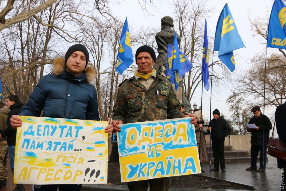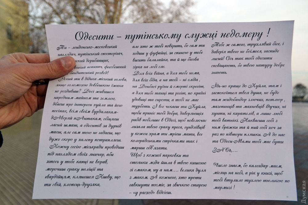 100 патриотов. На всю Одессу. Агитация написана одной рукой и краской из одного набора.