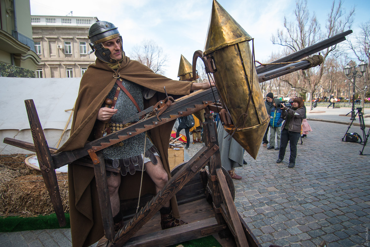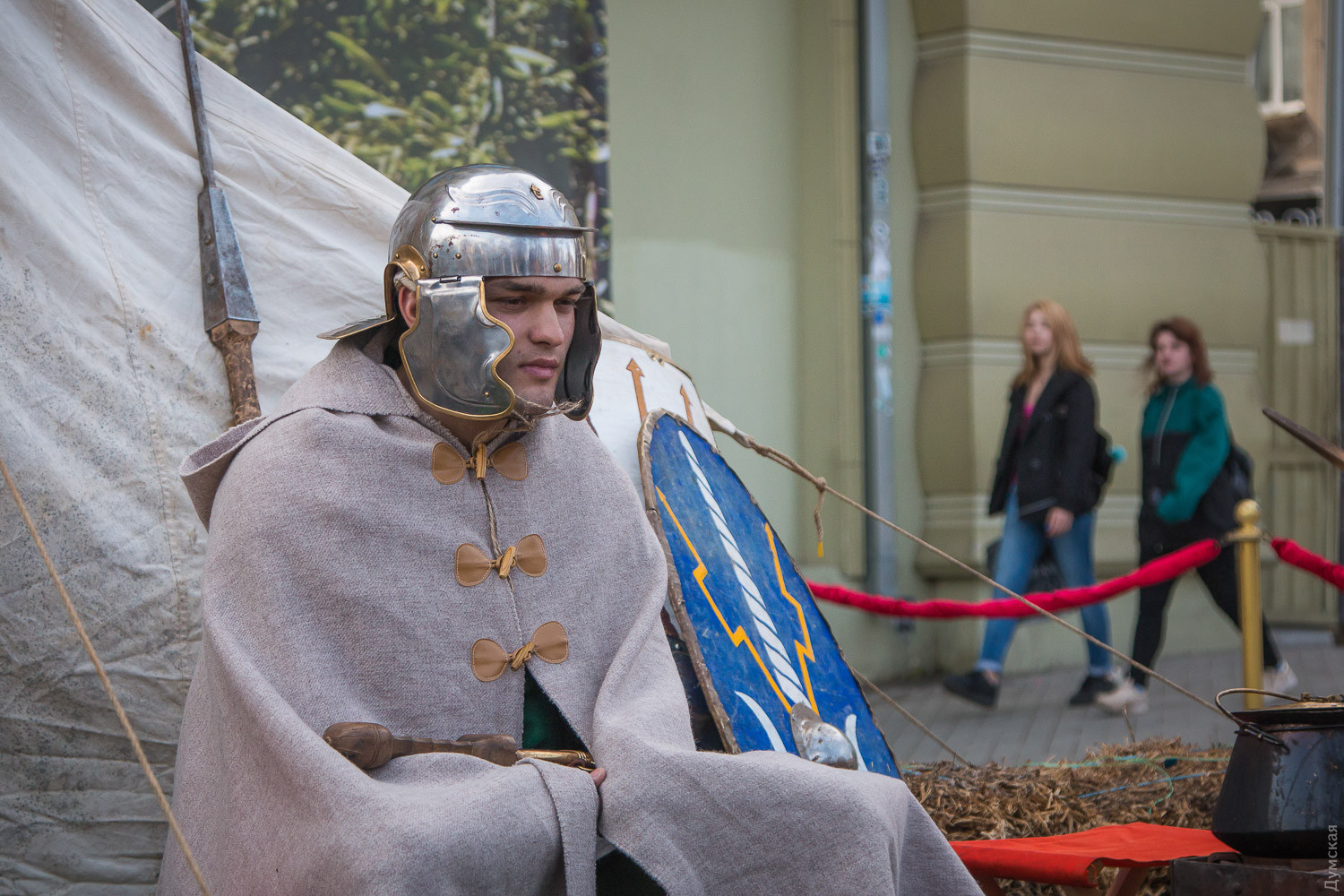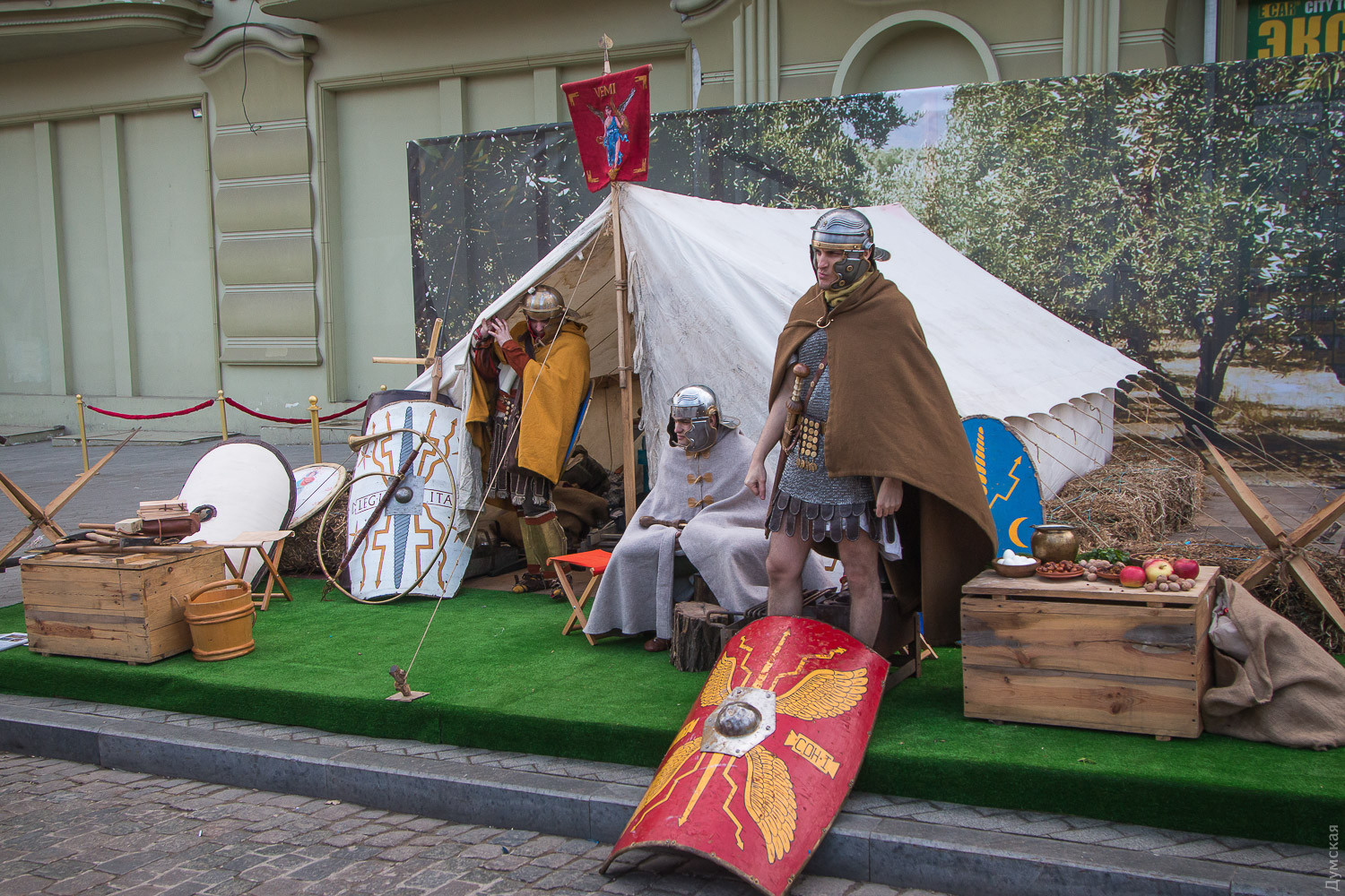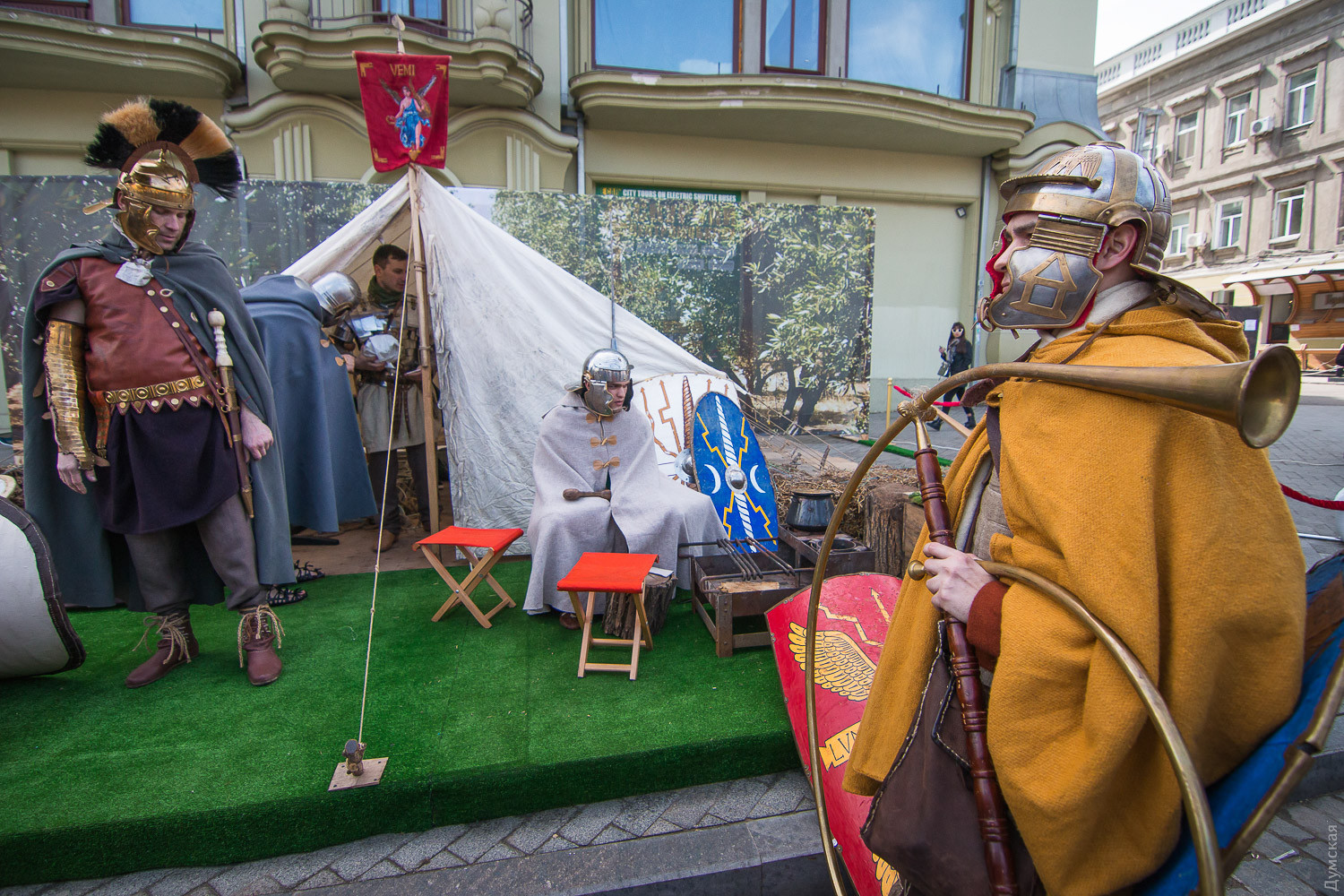 Подразделение римских войск снова обосновалось в самом центре Одессы, на Дерибасовской улице. Лагерь центурии разбит прямо у входа в гостиницу «Большая Московская», которую на днях покинули зелоты активисты «Свободы». В прошлом году, напомним, он был на другой стороне улицы, у Горсада. В палатке пока находятся центурион и пять легионеров — это любители исторической реконструкции из Одессы и Днепра. По словам «римлян», уже завтра к ним присоединятся единомышленники из Чехии и Румынии. Легионеры заняты рутинными делами, которыми занимались их предшественники два тысячелетия назад — чинят амуницию, точат короткие мечи-гладиусы, подшивают разорвавшиеся в долгом походе калиги (сапоги) и проверяют механизмы баллисты. Реконструкторы охотно фотографируются с прогуливающимися одесситами и отвечают на их назойливые вопросы о весе доспехов и их стоимости. «Мы постарались воссоздать костюмы с максимальной исторической точностью, — рассказал журналистам один из организаторов лагеря, вице-президент фонда «Добрый Самарянин» Денис Средниченко. — У центуриона, к примеру, навершие повторяет украшение, найденное при раскопках на территории Украины, в Крыму». Римский лагерь будет функционировать еще несколько дней. В субботу легионеры примут участие в ставшей уже традиционной Пасхальной реконструкции. Ее участники воссоздадут крестный путь Иисуса Христа на Голгофу (без самого распятия). Организаторы обещают, что в этом году реконструкция будет еще масштабнее, чем в прошлом. В ней задействуют 300 актеров-любителей. Все действо будет транслироваться в интернет и на три больших экрана. «На Дерибасовской, которая превратится в Виа Долороза (улица в Старом городе Иерусалима, по которой пролегал путь Иисуса на Голгофу, — Ред.), будет шесть полноценных сцен, на которых будут разыгрываться эпизоды последних дней Христа, — рассказал «Думской» один из организаторов Роман Медяник. — В конце мы проведем праздничный концерт. Это возможность задуматься о пасхальных событиях и подвиге Иисуса Христа ради всех нас». Фото — Александр Гиманов СМЕРТЬ РОСІЙСЬКИМ ОКУПАНТАМ! ![]() Вопреки расхожему представлению, униформы в современном понимании у легионеров не было, и внешним видом они могли сильно отличаться друг от друга Помітили помилку? Виділяйте слова з помилкою та натискайте control-enter Новини по цій темі: 16 квітня 2023: Одесити справляють Воскресіння Христове: біля храмів Православної церкви України величезна кількість вірян (фоторепортаж) 20 квітня 2022: В Украине из-за военного положения не будет дополнительных выходных на Пасху и майские 4 травня 2021: В Турции закрыли гостиницу из-за вечеринки с туристами без масок – в числе нарушителей были украинцы 2 травня 2021: Одесские православные, греко-католики и часть протестантов отмечают Воскресение Христово (фоторепортаж) |
