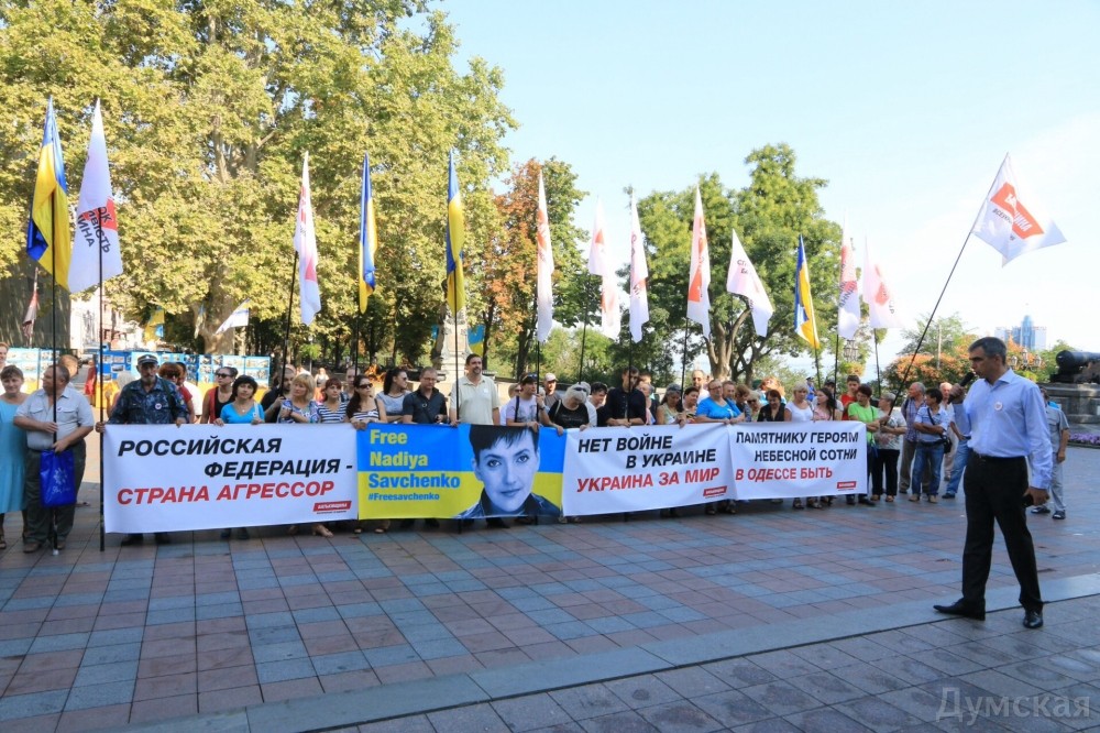 На Думской площади прошел небольшой митинг за Савченко и против застройки Французского бульвараВ преддверии очередной сессии городского совета одесситы по сложившейся традиции проводят на Думской площади пикеты и митинги. Кроме «Батькившины», требующей признать Российскую Федерацию страной-агрессором, еще 10 человек требовали остановить застройку исторических ареалов высотными зданиями. Речь, в частности, идет о проекте ДПТ, который предусматривает возведение многоэтажного дома на Отрадной. Порядок на площади охраняет порядка 100 силовиков — от бойцов «Шторма» и милиции до сотрудников департамента муниципальной безопасности. Ни одного патрульного полицейского у мэрии нет. СМЕРТЬ РОСІЙСЬКИМ ОКУПАНТАМ! Помітили помилку? Виділяйте слова з помилкою та натискайте control-enter |