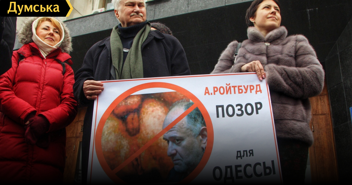 Они развернули плакаты с репродукцией одного из творений художника и его портретом. Митингующие подписали обращение к депутатам с требованием провести повторное заседание конкурсной комиссии, запретив Ройтбурду принимать участие в конкурсе. «Я убежден, что Ройтбурд не может быть проводником нашей одесской живописной культуры, — рассказал журналистам Островский. — У меня нет ничего личного против Александра как художника. Он имеет право как художник делать, что он хочет и как он хочет. Но и я как искусствовед имею право критиковать его. Но когда он хочет стать директором музея, я понимаю, что это огромная опасность для государственного учреждения. К примеру, он уже предложил ликвидировать музейную библиотеку (это ложь, — Ред.)».