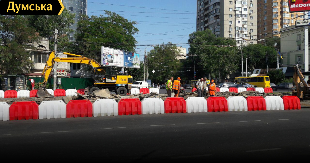 Дорожники, как и анонсировала мэрия, перекрыли сегодня часть перекрестка на 5-й станции Большого Фонтана.